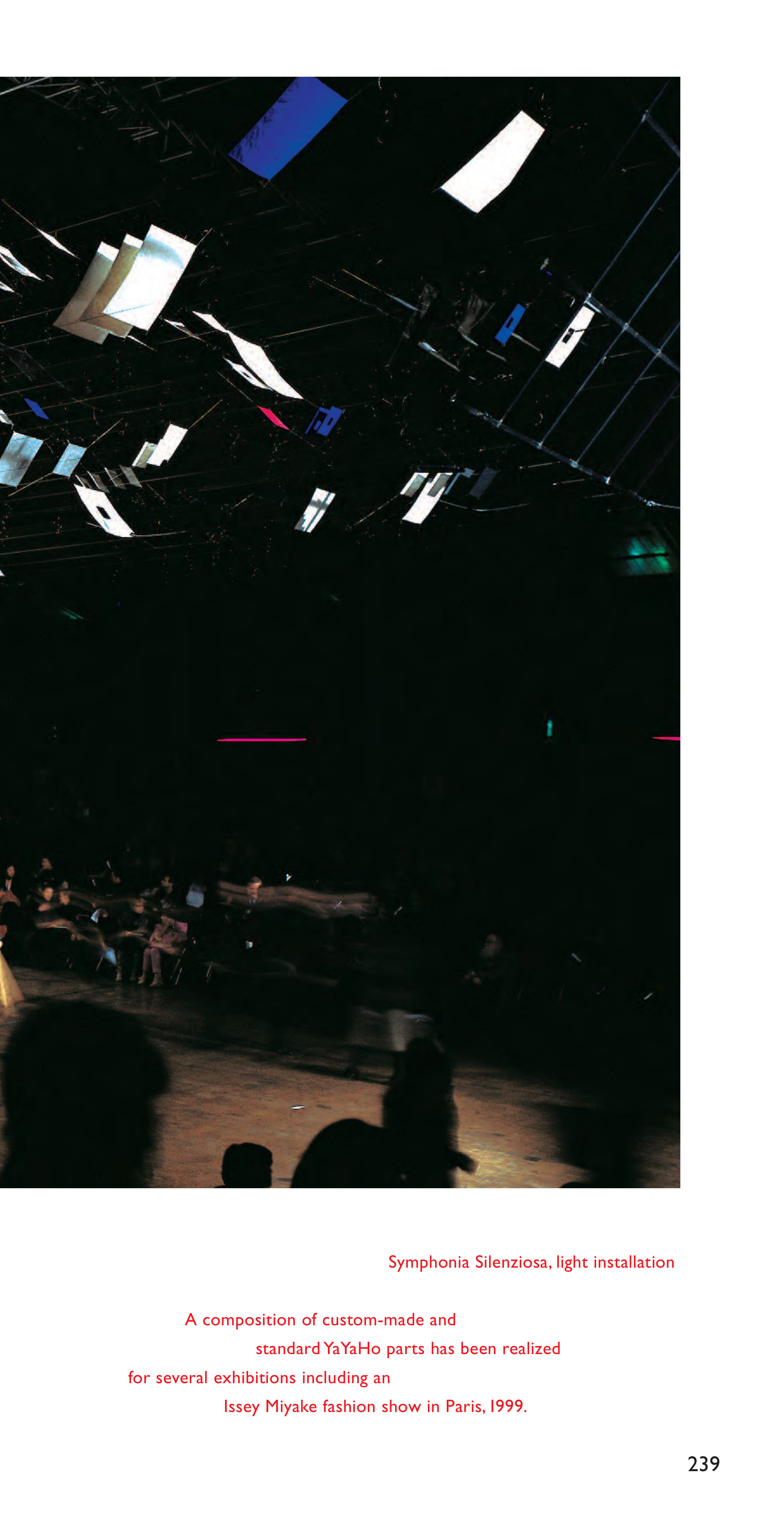 239 Symphonia Silenziosa, light installation A composition of custom-made and standard YaYaHo parts has been realized for several exhibitions including an Issey Miyake fashion show in Paris,1999.