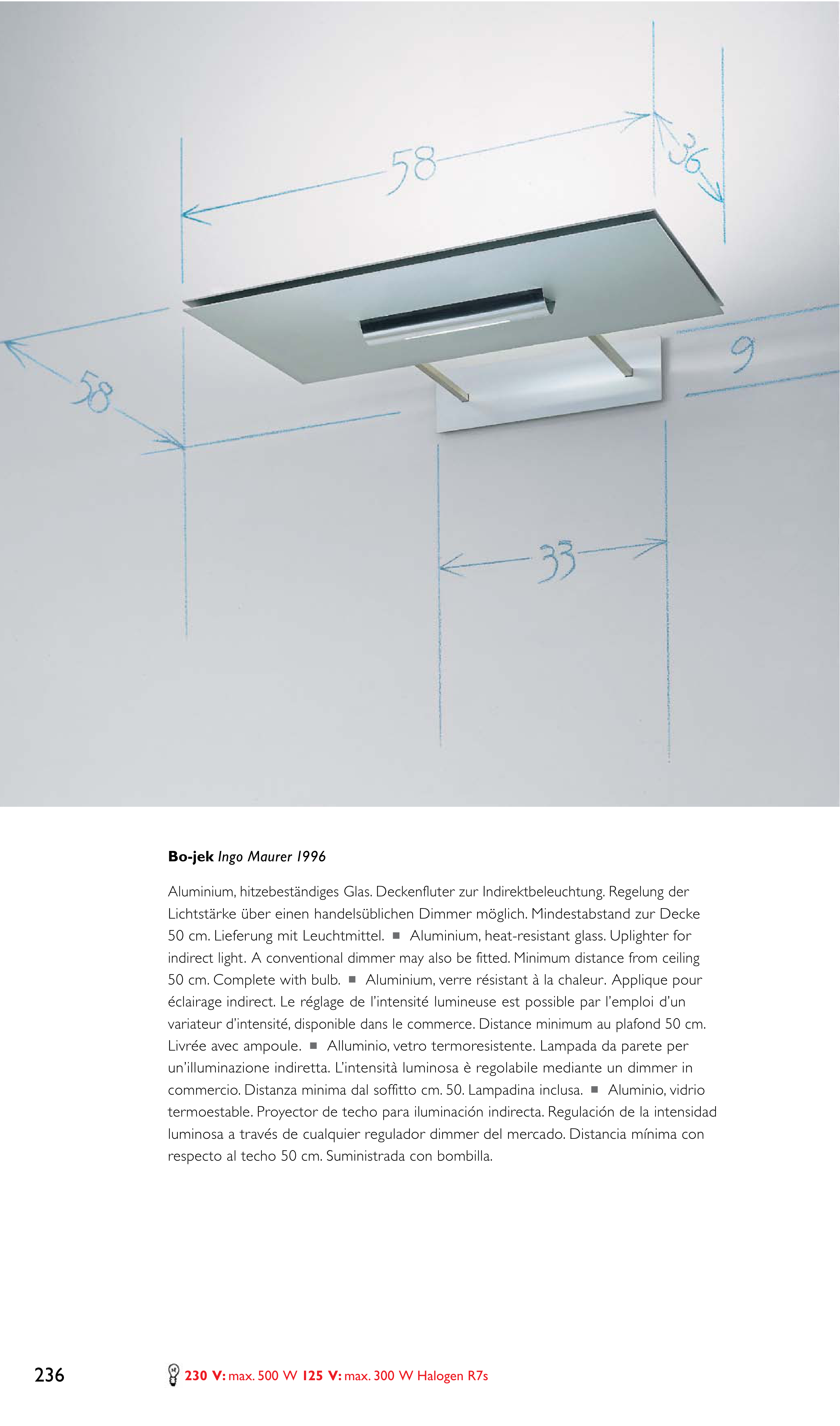 indirect light. A conventional dimmer may also be fitted. Minimum distance from ceiling