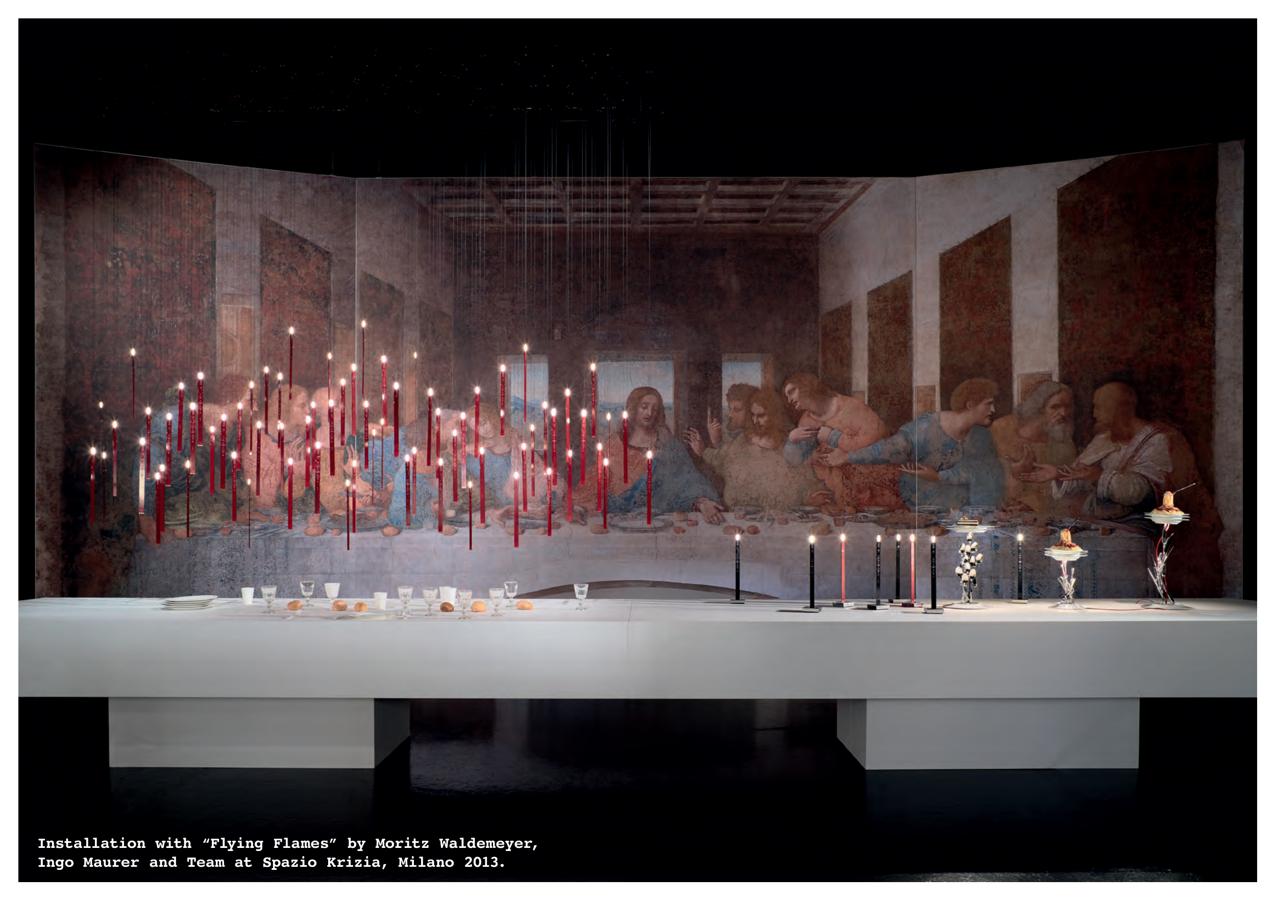 Installation with “Flying Flames” by Moritz Waldemeyer,