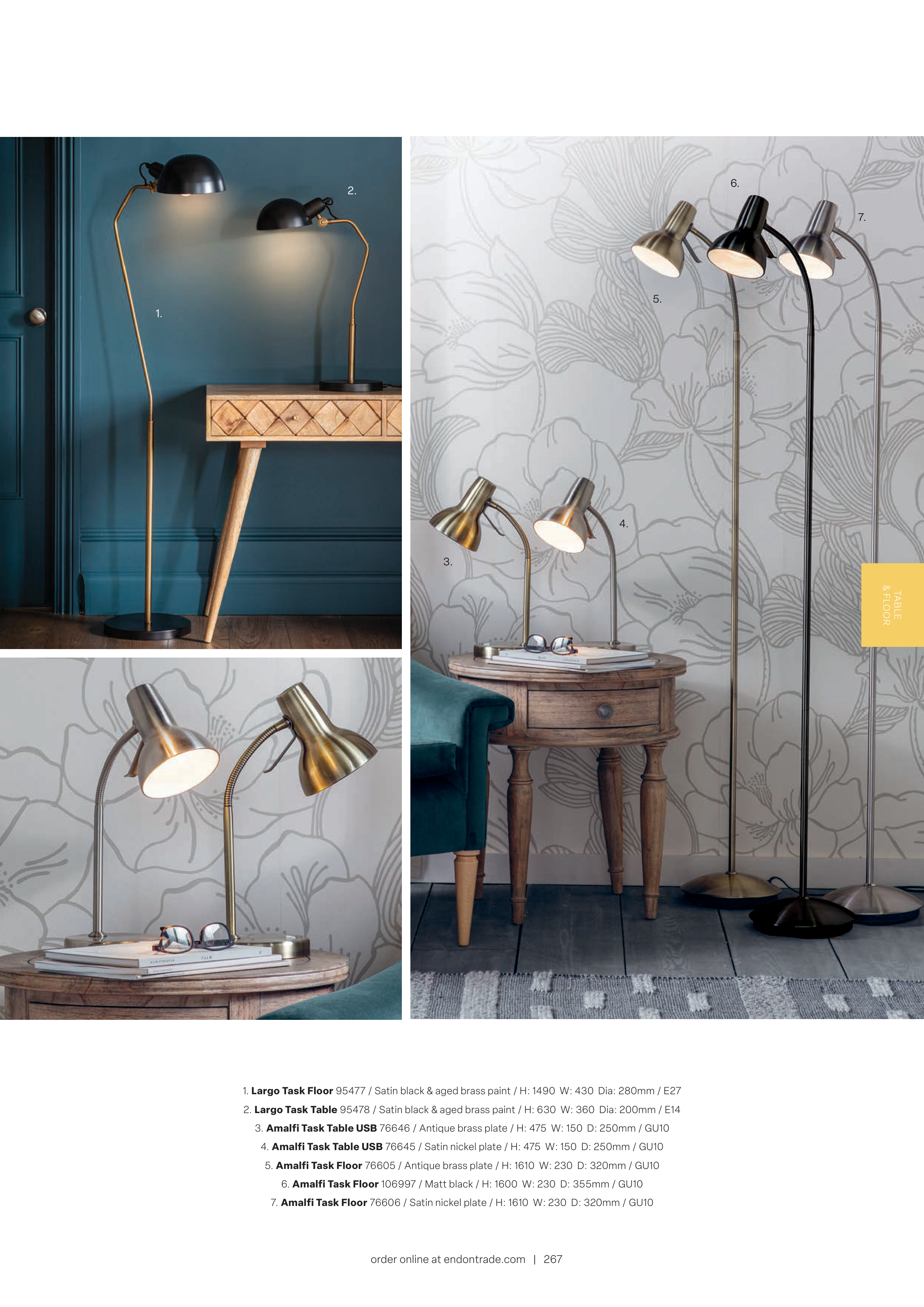 5. Amalfi Task Floor 76605 / Antique brass plate / H: 1610 W: 230 D: 320mm / GU10