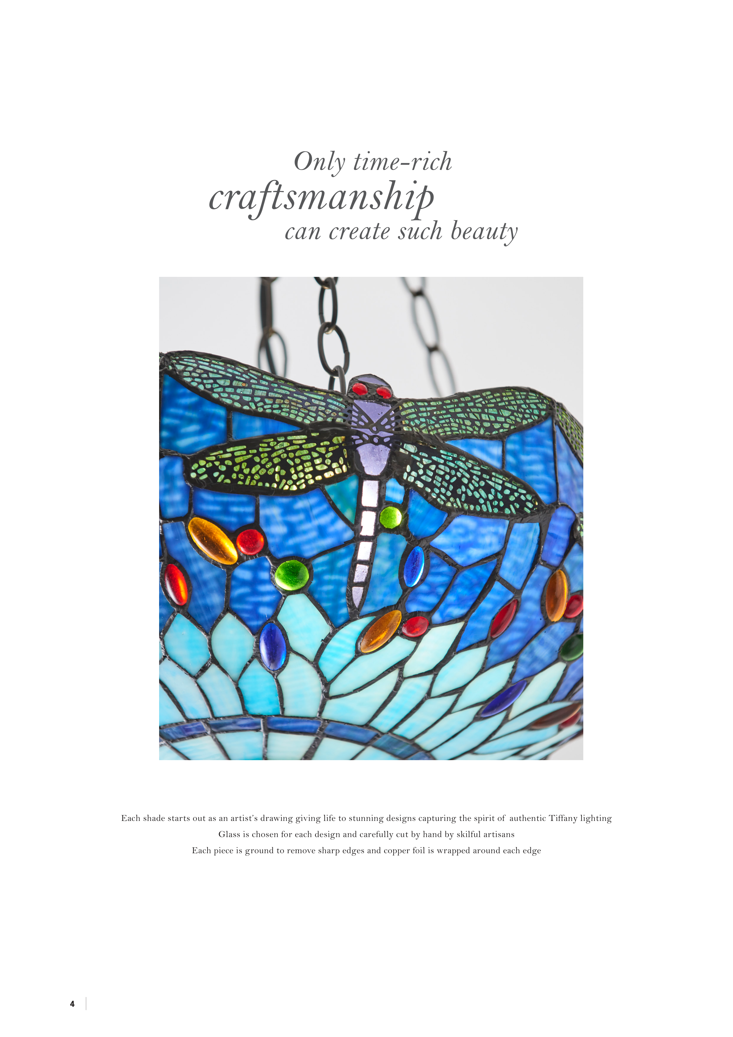 Each shade starts out as an artist’s drawing giving life to stunning designs capturing the spirit of authentic Tiffany lighting