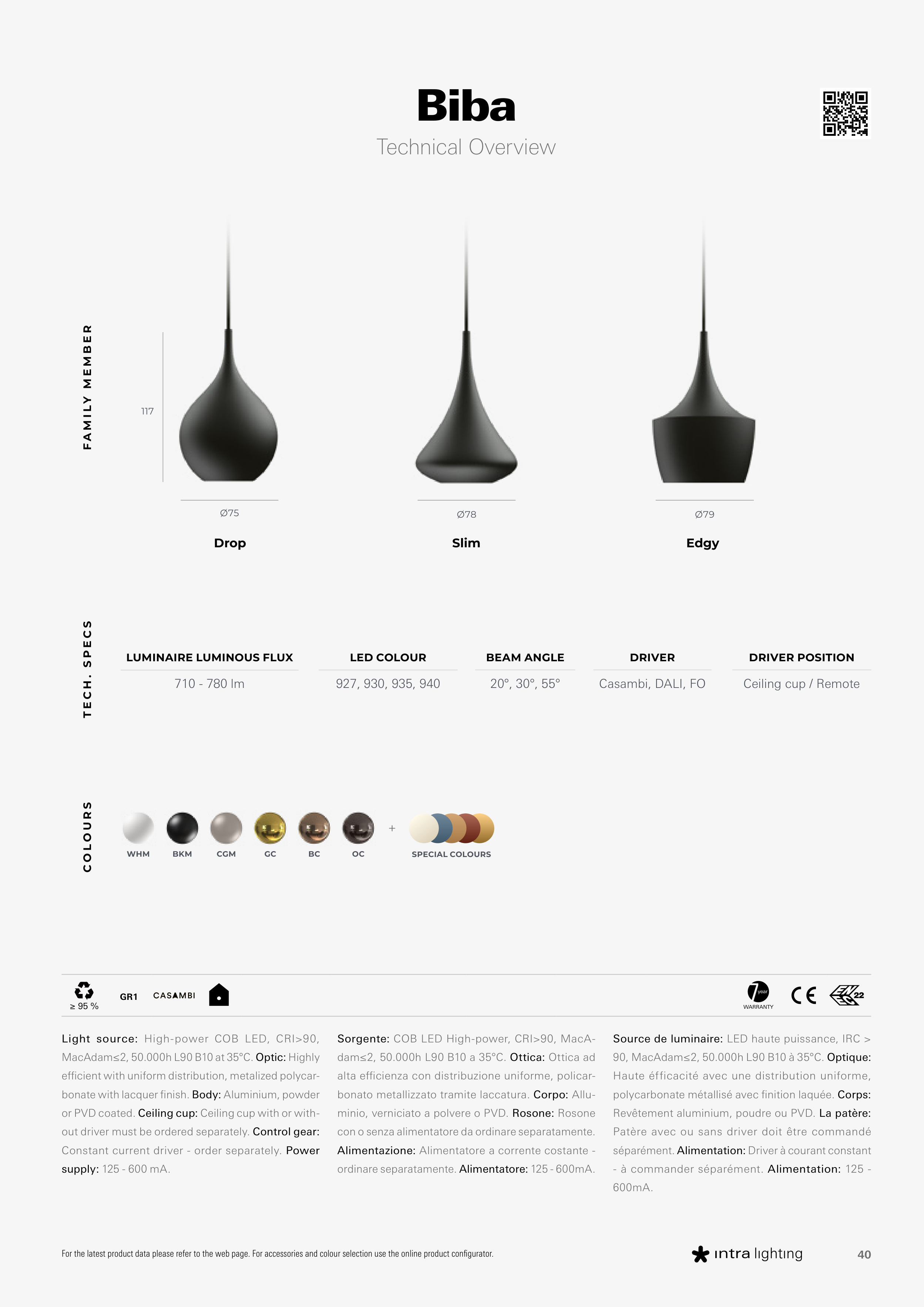 MacAdam≤2, 50.000h L90 B10 at 35°C. Optic: Highly