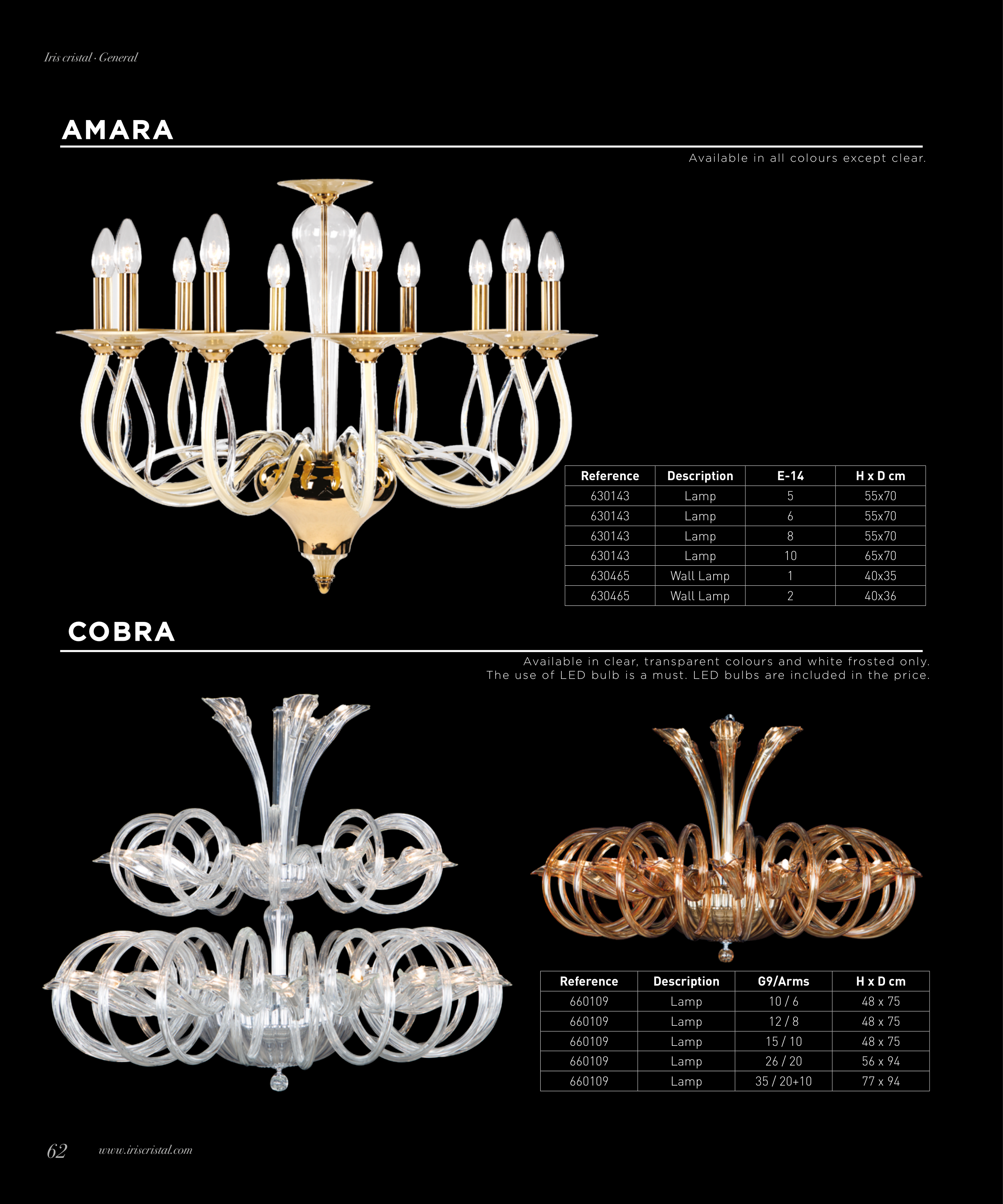 Available in clear, transparent colours and white frosted only.