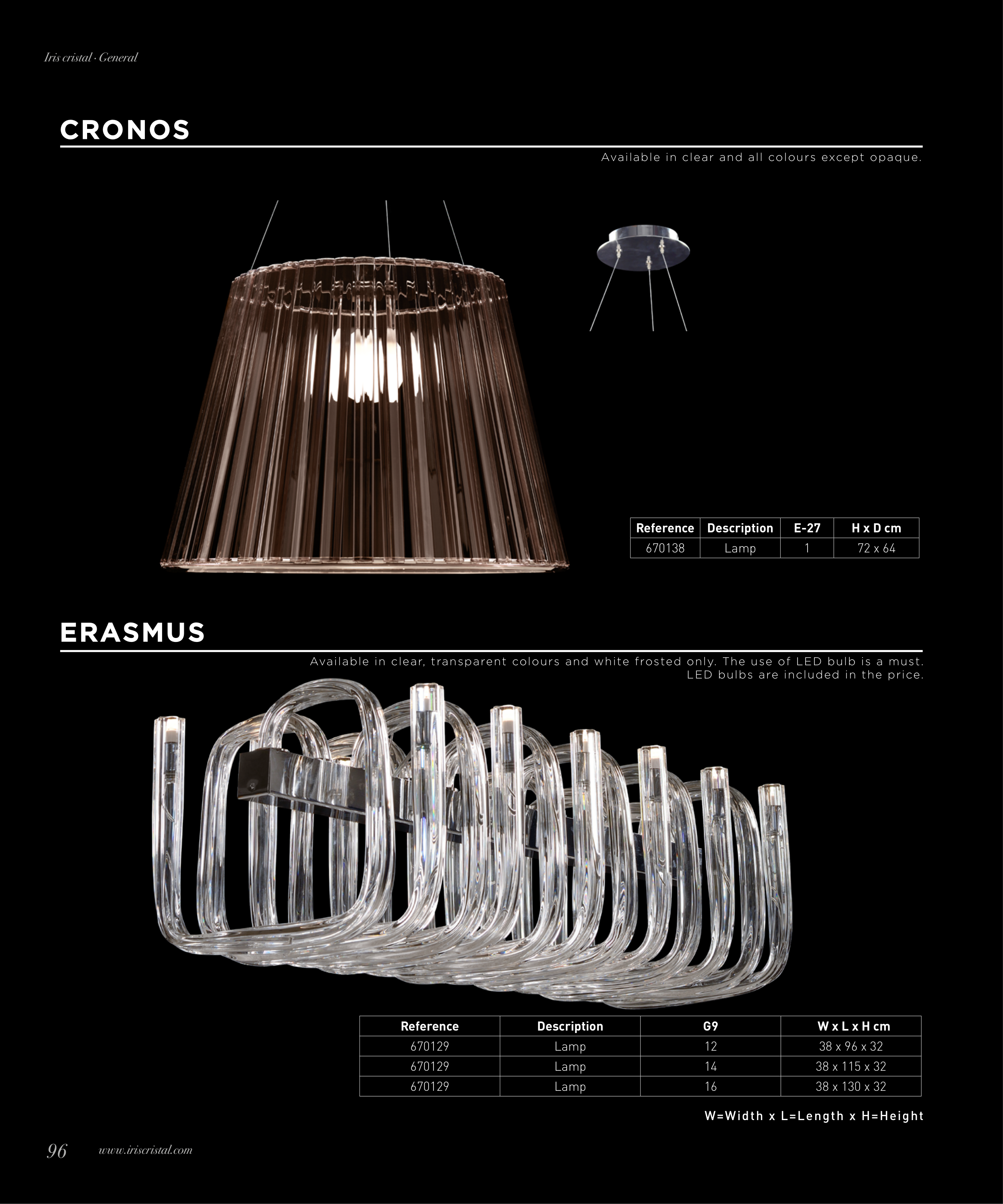 Available in clear, transparent colours and white frosted only. The use of LED bulb is a must.