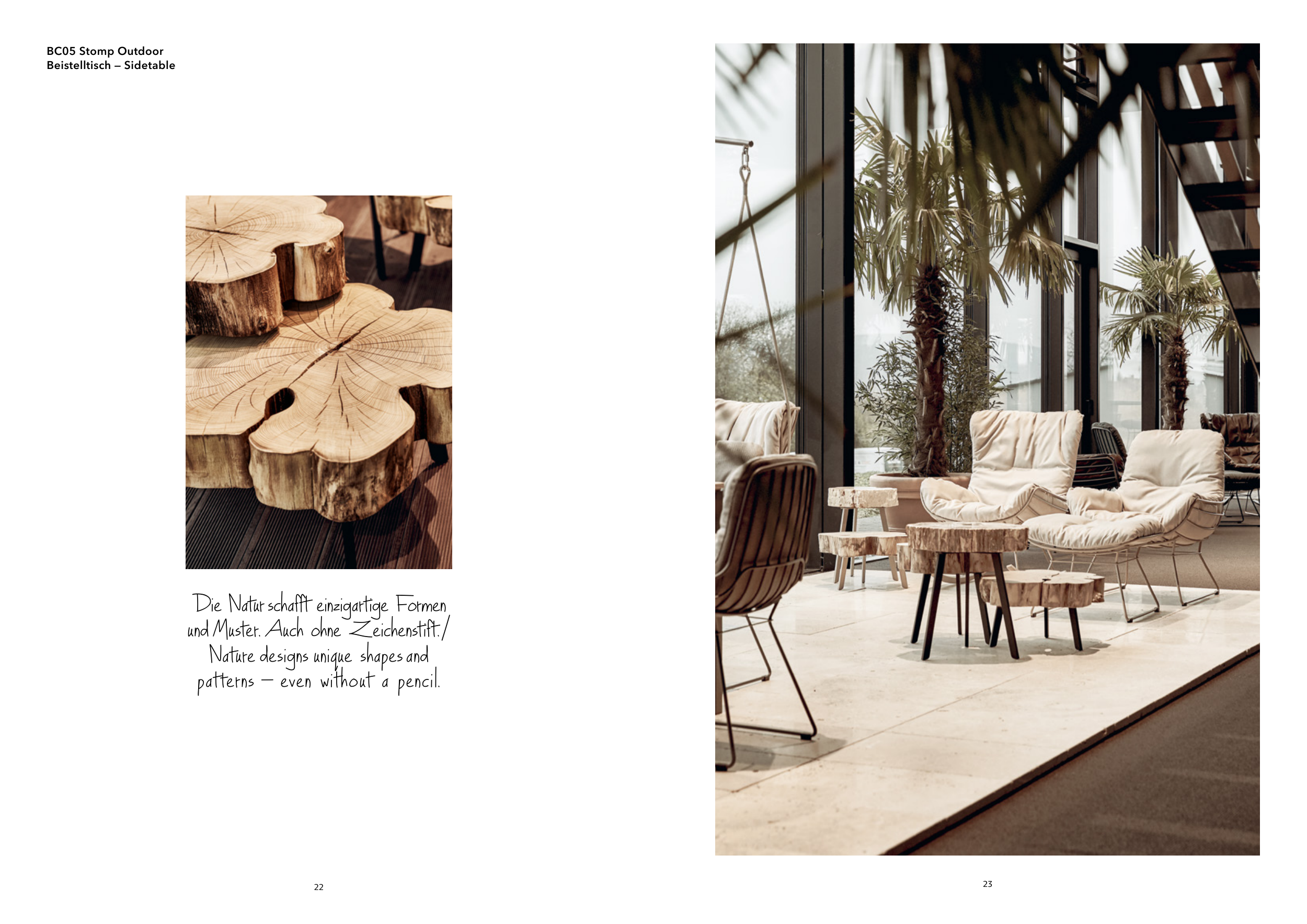 23 22 BC05 Stomp Outdoor Beistelltisch — Sidetable Die Natur schafft einzigartige Formen und Muster. Auch ohne Zeichenstift. / Nature designs unique shapes and patterns - even without a pencil.