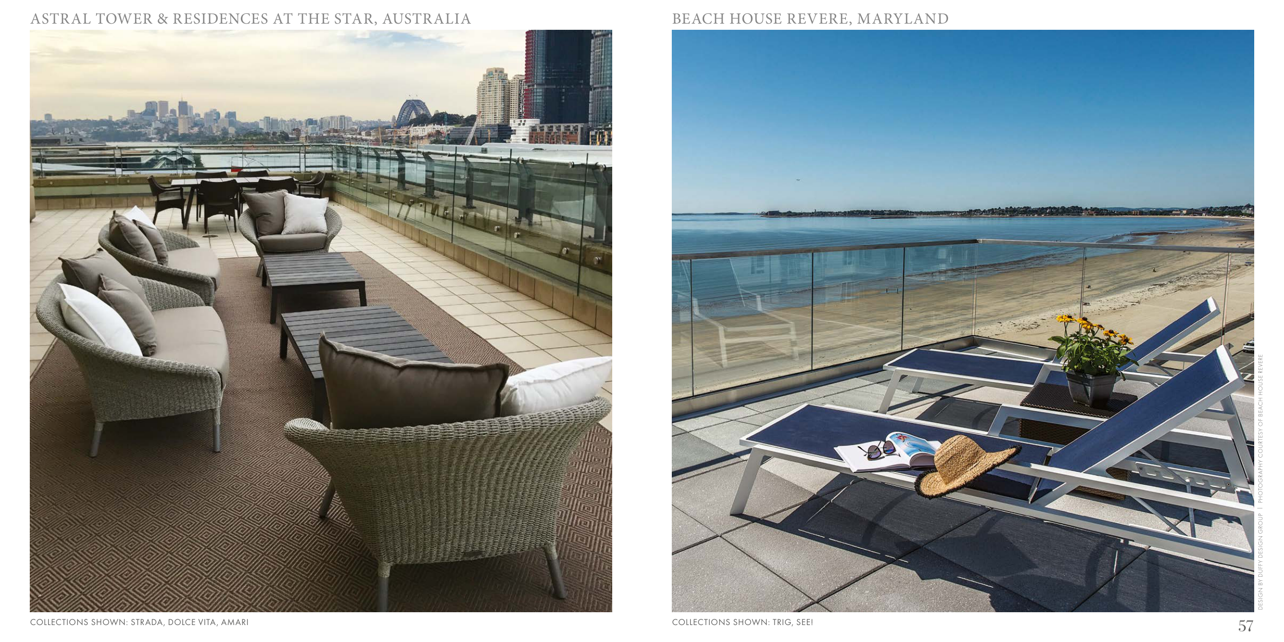 DESIGN BY DUFFY DESIGN GROUP | PHOTOGRAPHY COURTESY OF BEACH HOUSE REVERE COLLECTIONS SHOWN: TRIG, SEE! BEACH HOUSE REVERE, MARYLAND 57 COLLECTIONS SHOWN: STRADA, DOLCE VITA, AMARI ASTRAL TOWER & RESIDENCES AT THE STAR, AUSTRALIA
