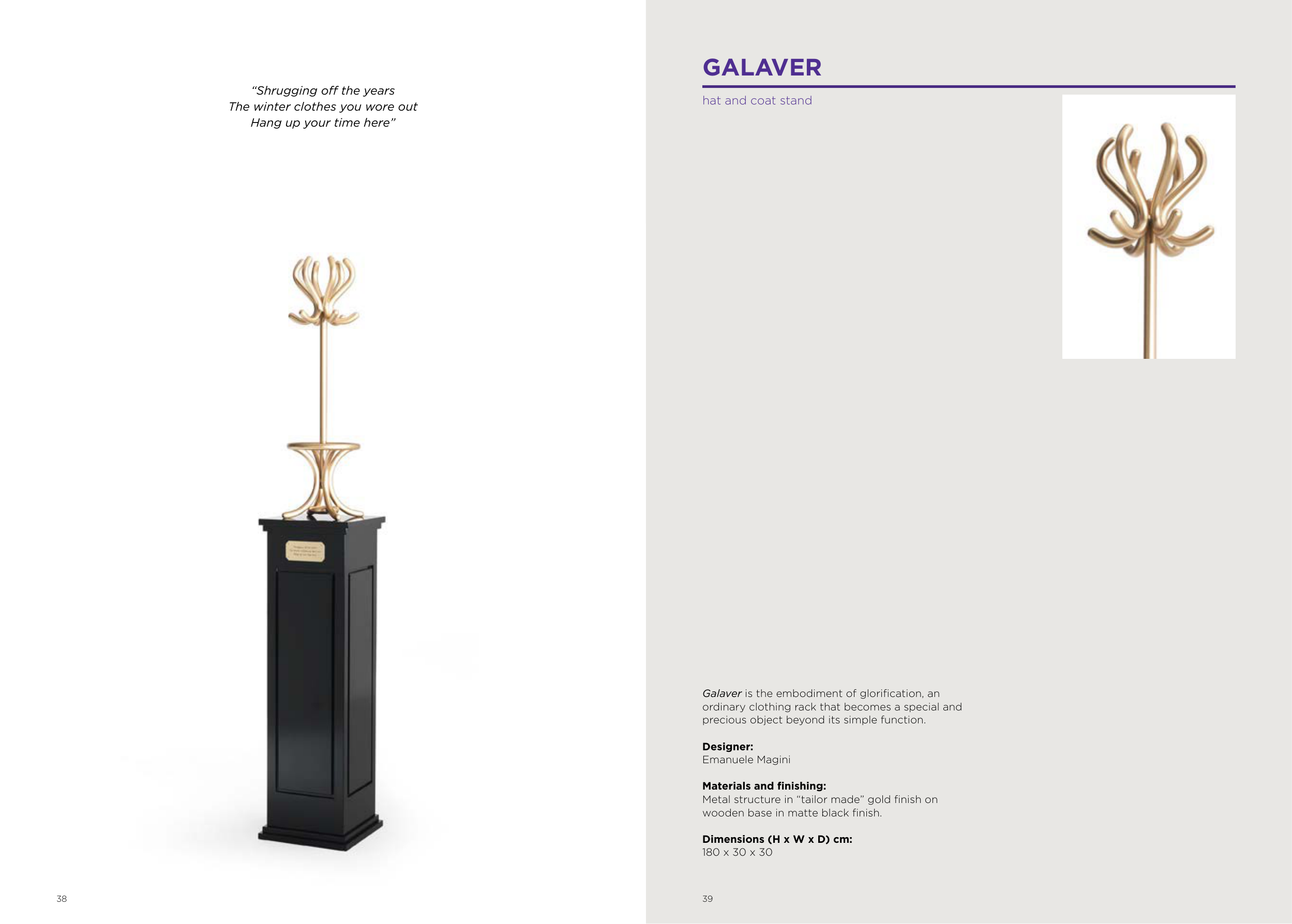Metal structure in “tailor made” gold finish on