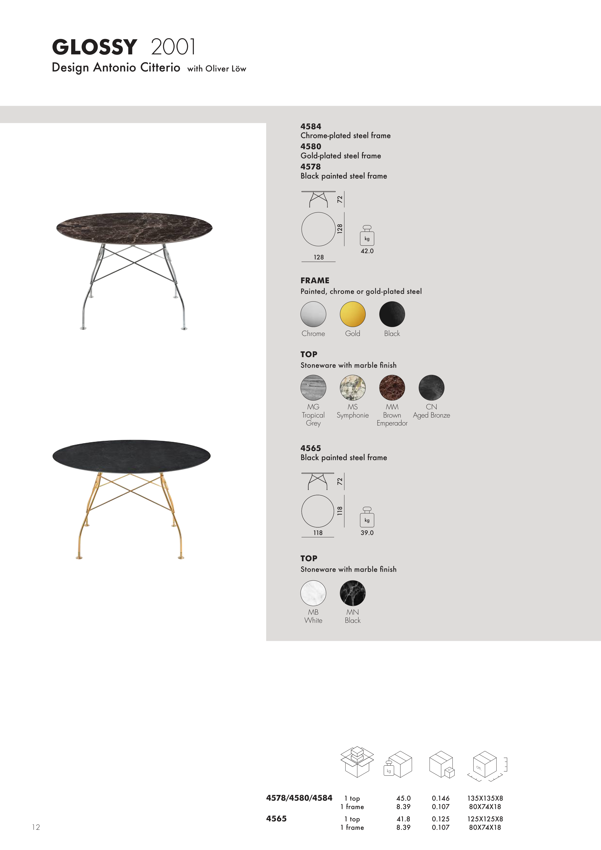 Painted, chrome or gold-plated steel