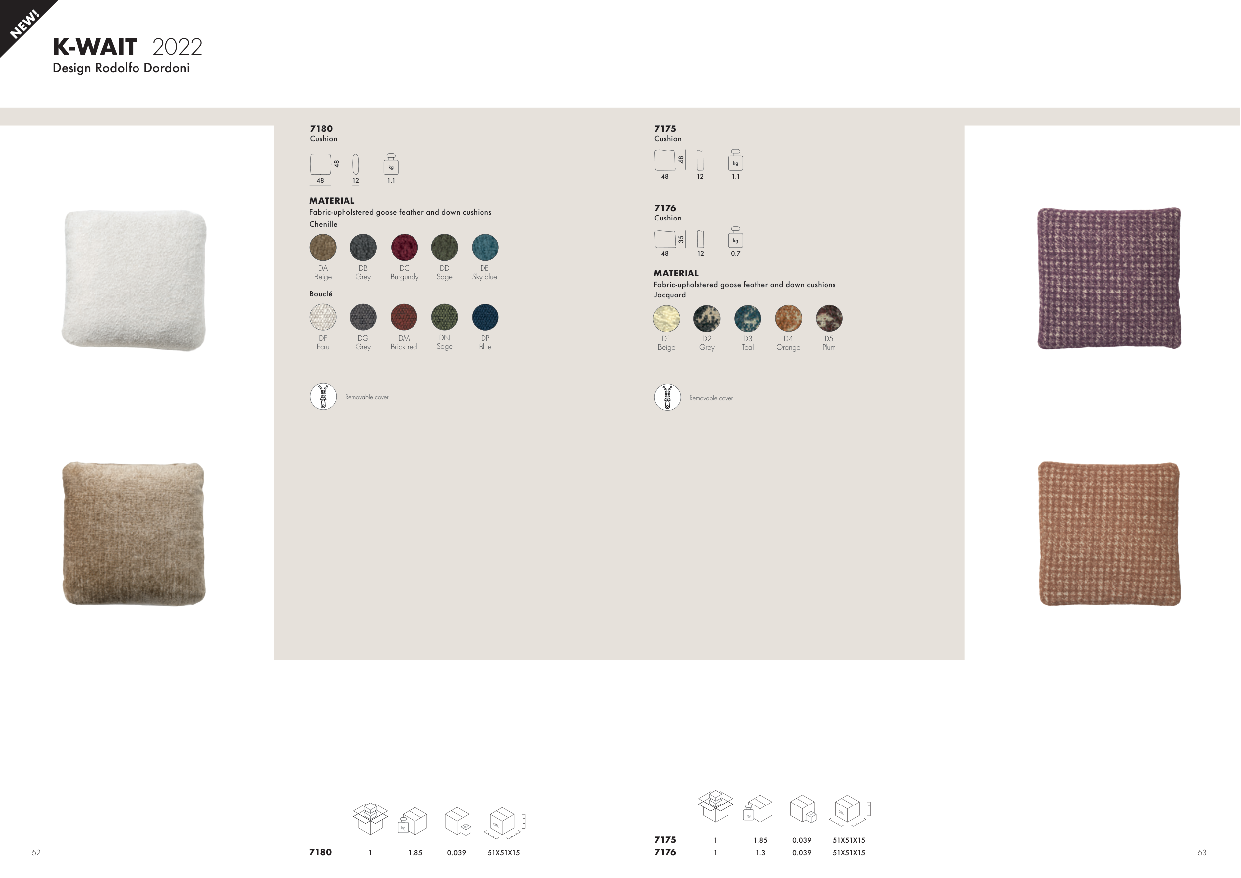 Fabric-upholstered goose feather and down cushions