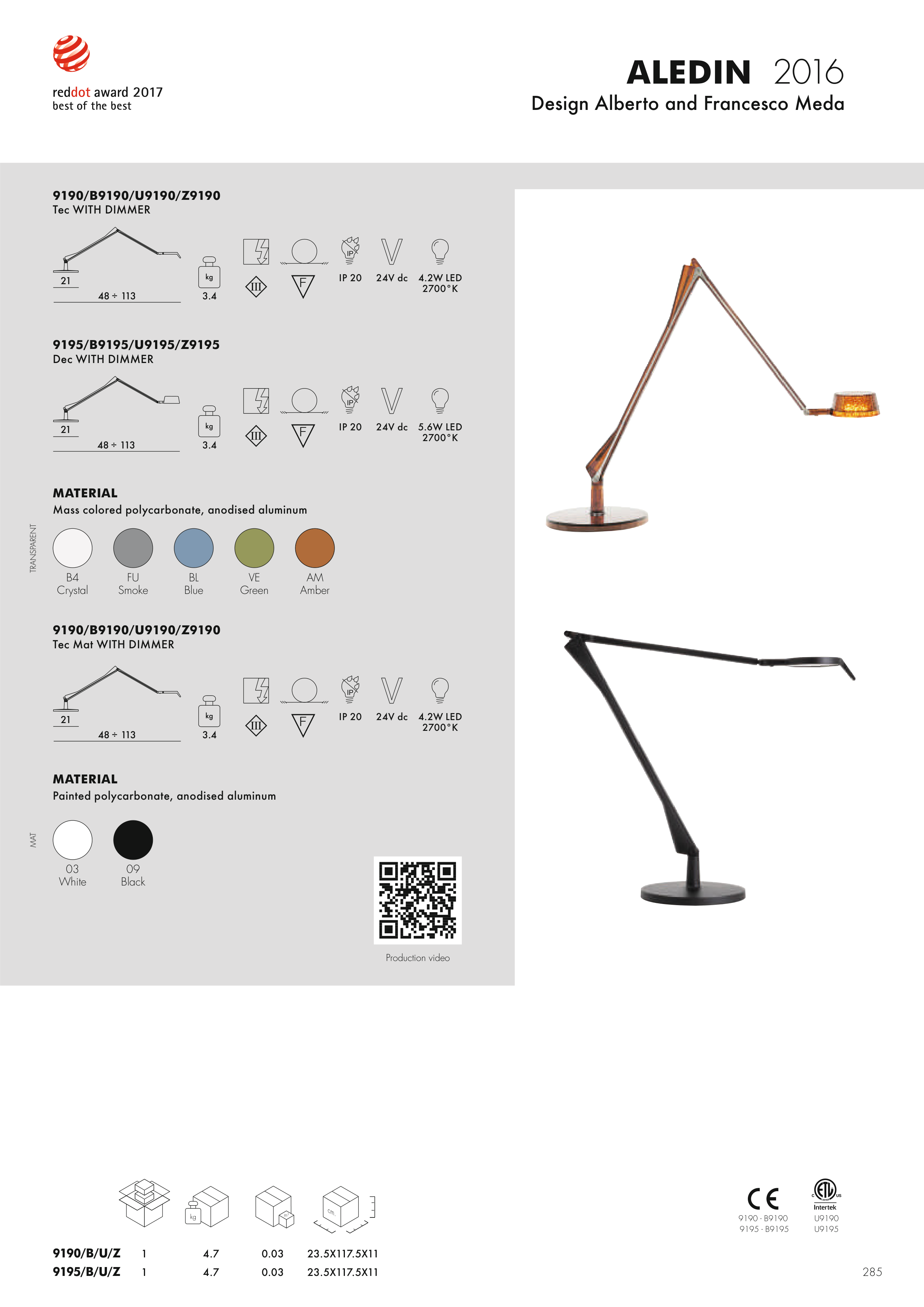 Painted polycarbonate, anodised aluminum
