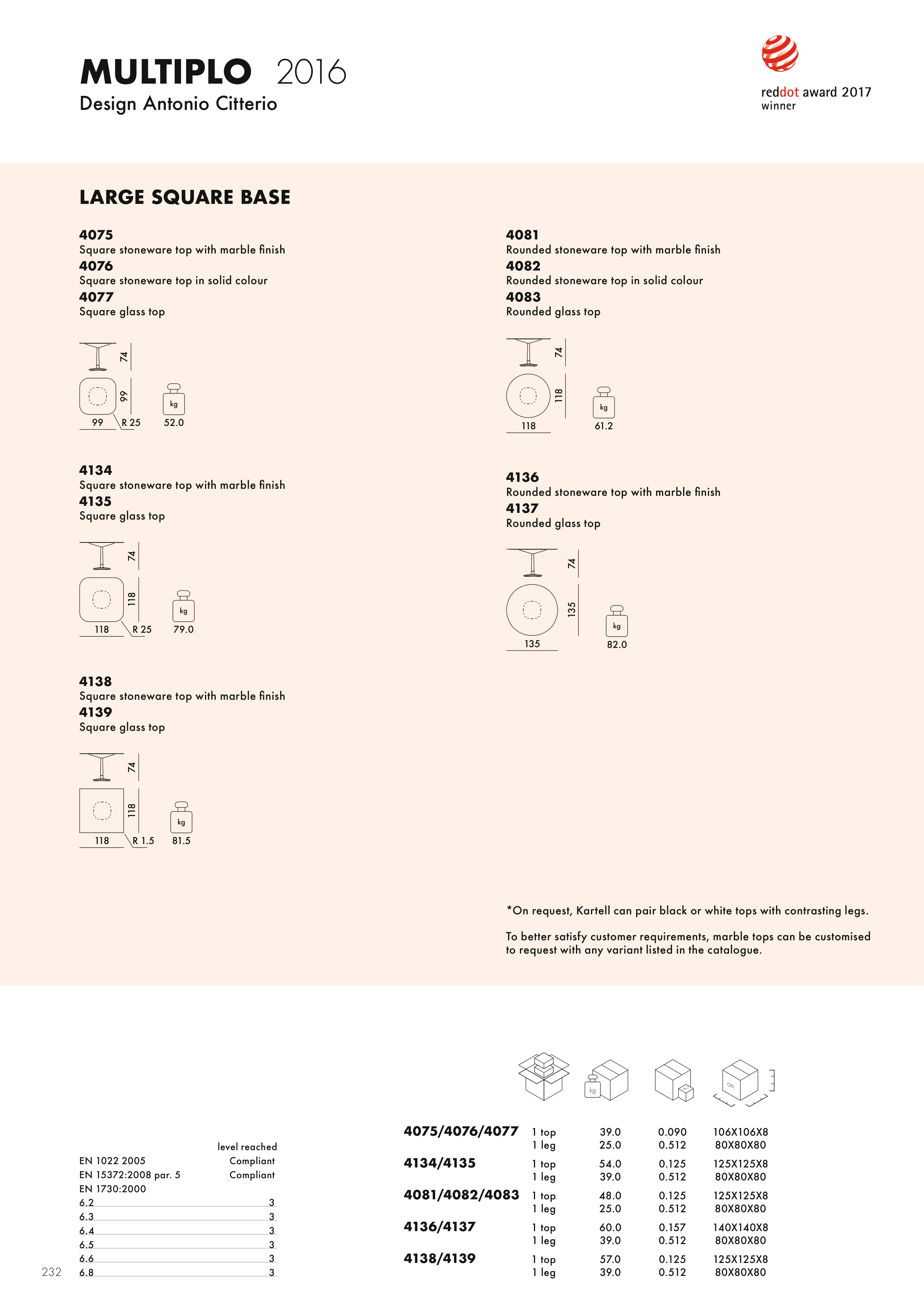 *On request, Kartell can pair black or white tops with contrasting legs.