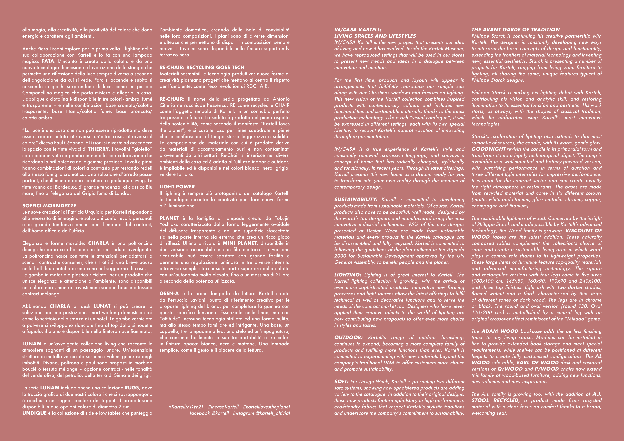 identity, to recount Kartell’s natural vocation of innovating