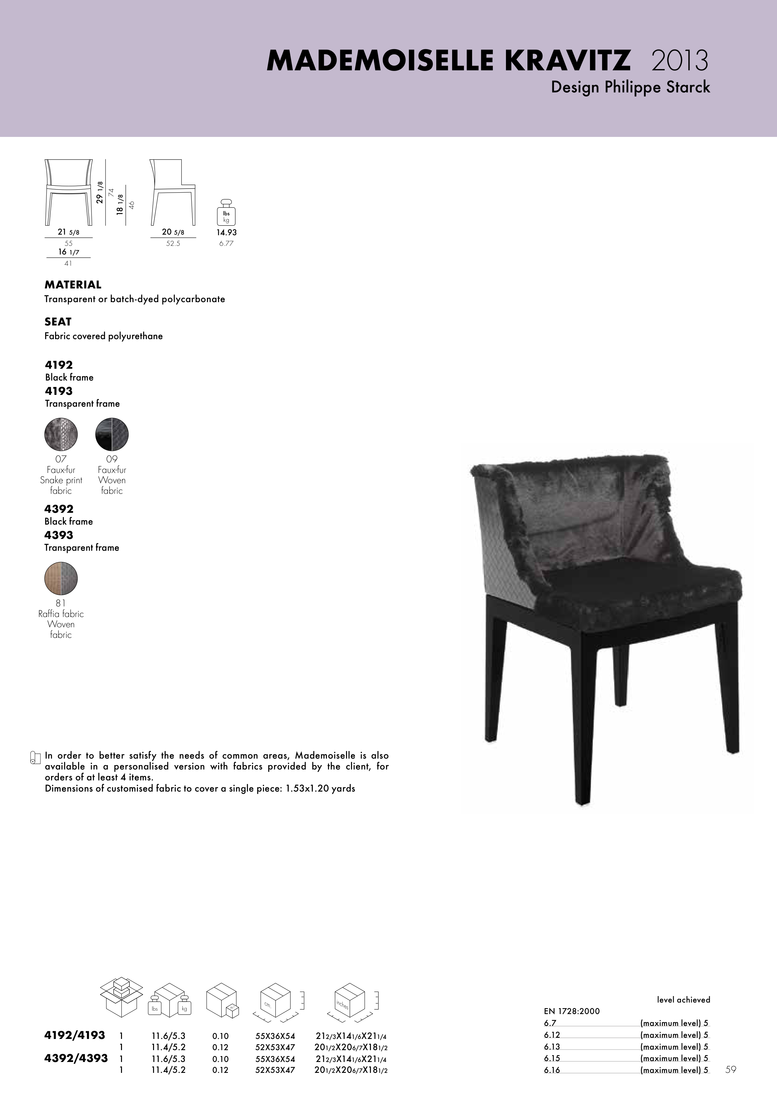 available in a personalised version with fabrics provided by the client, for
