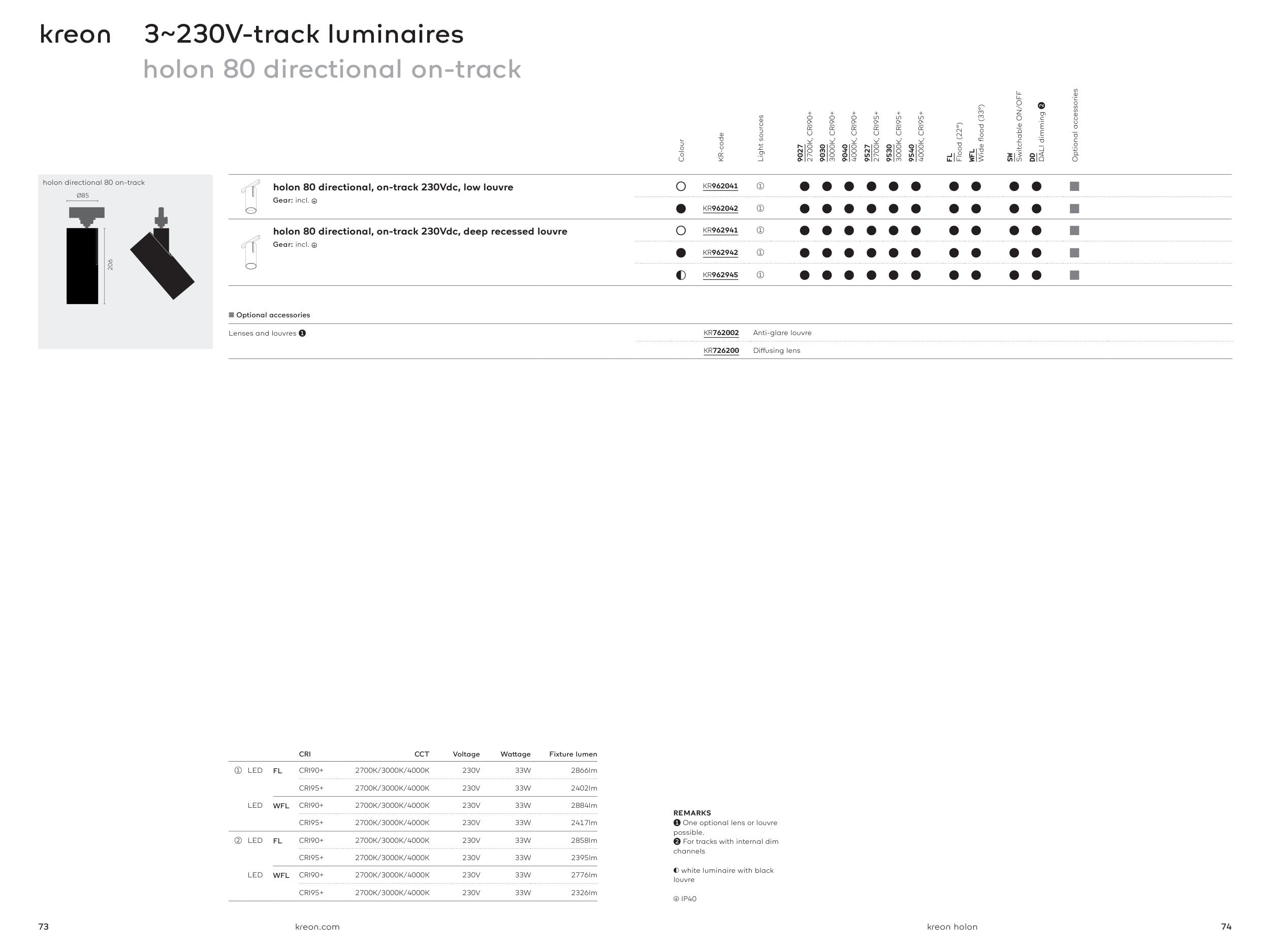 holon 80 directional, on-track 230Vdc, low louvre