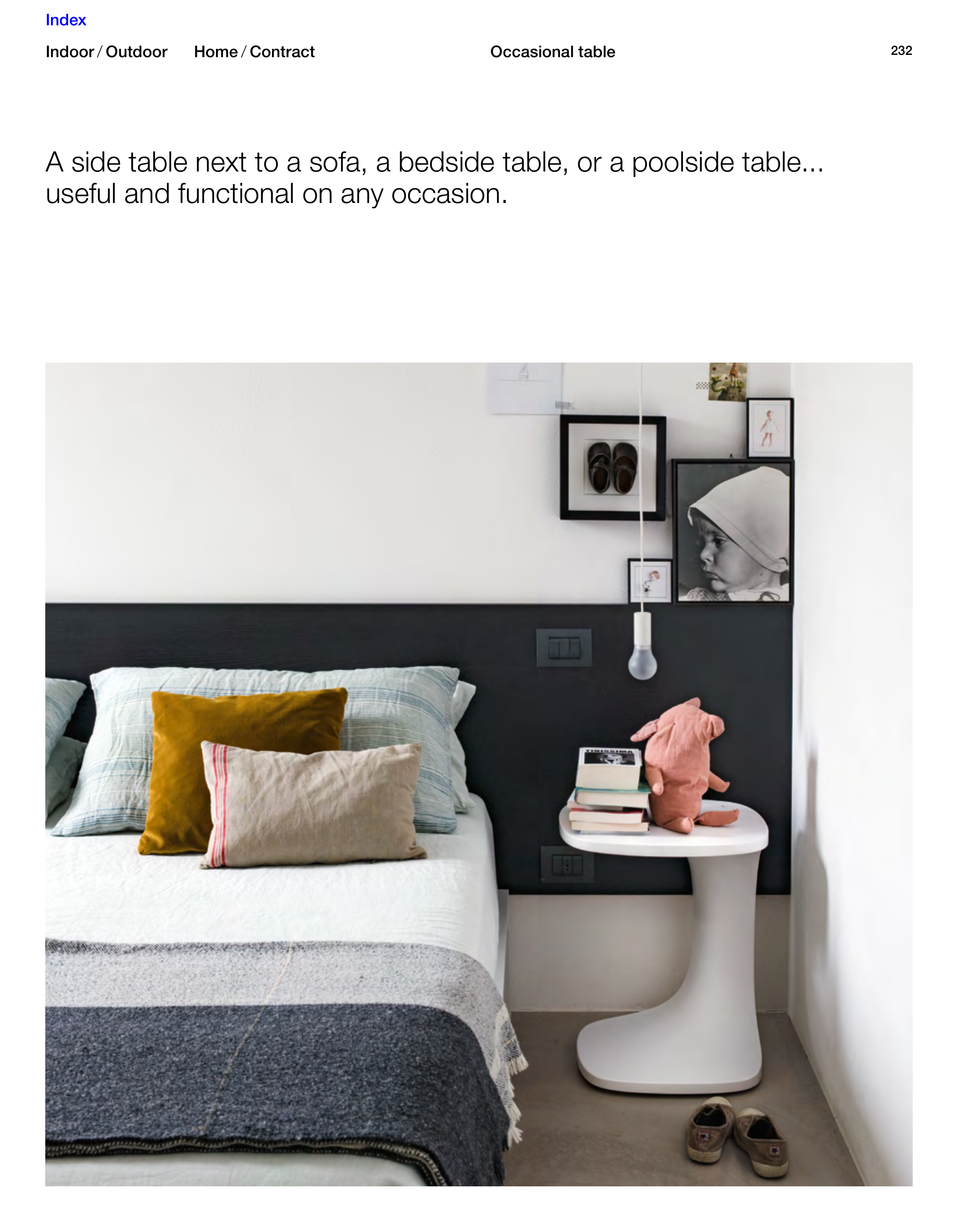 232 A side table next to a sofa, a bedside table, or a poolside table... useful and functional on any occasion. Home / Contract Indoor / Outdoor Occasional table Index