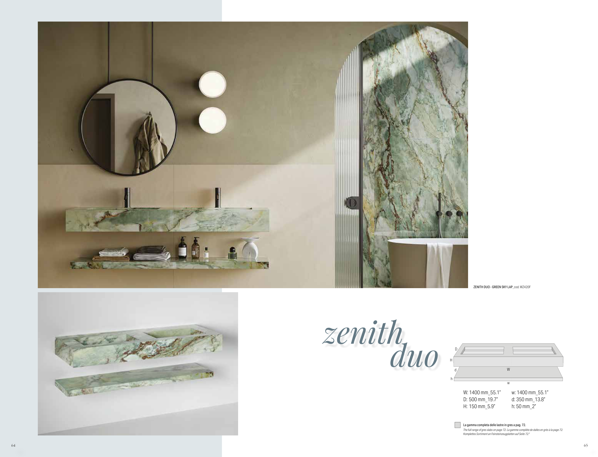 The full range of gres slabs on page 72. La gamme complète de dalles en grès à la page 72.