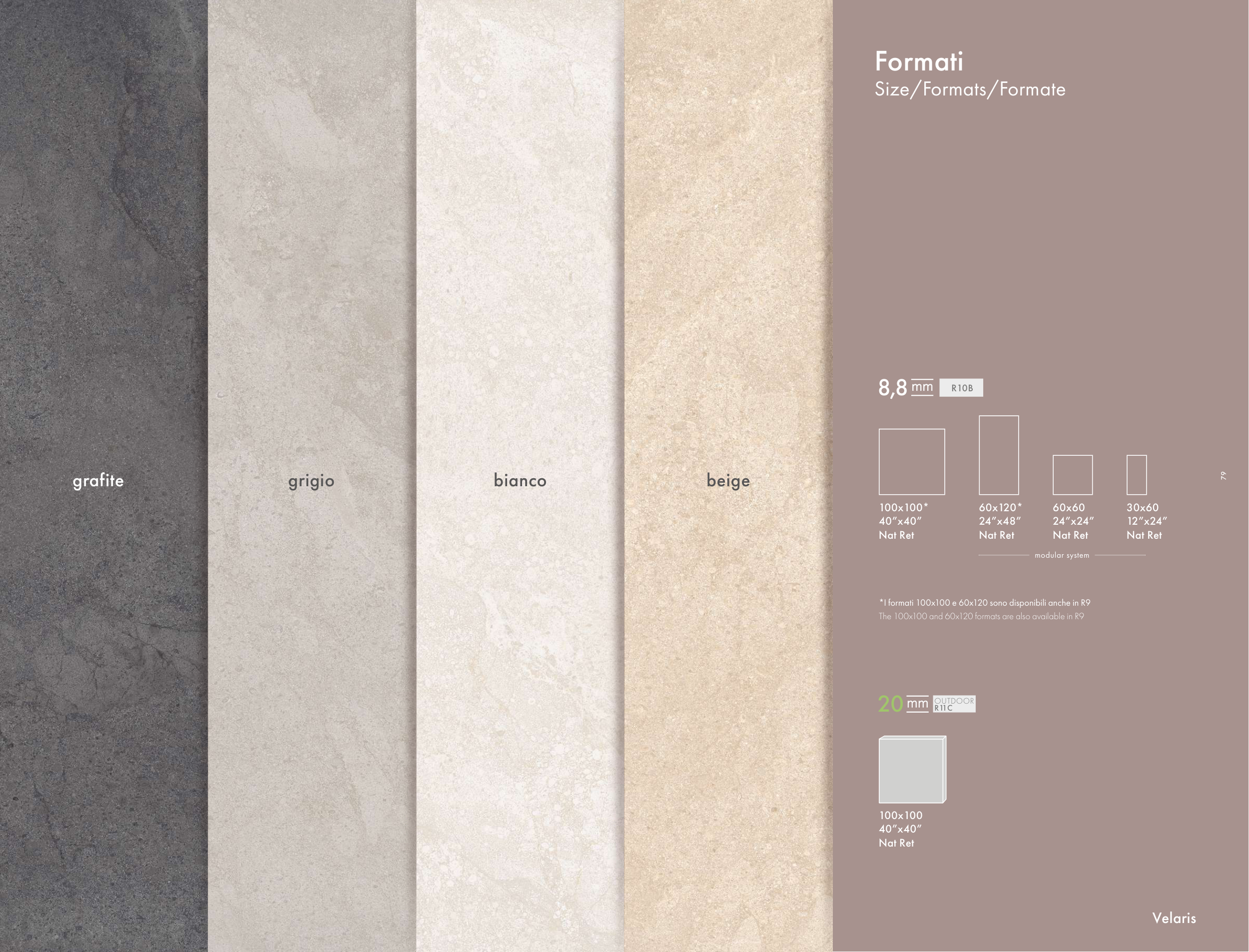 *I formati 100x100 e 60x120 sono disponibili anche in R9