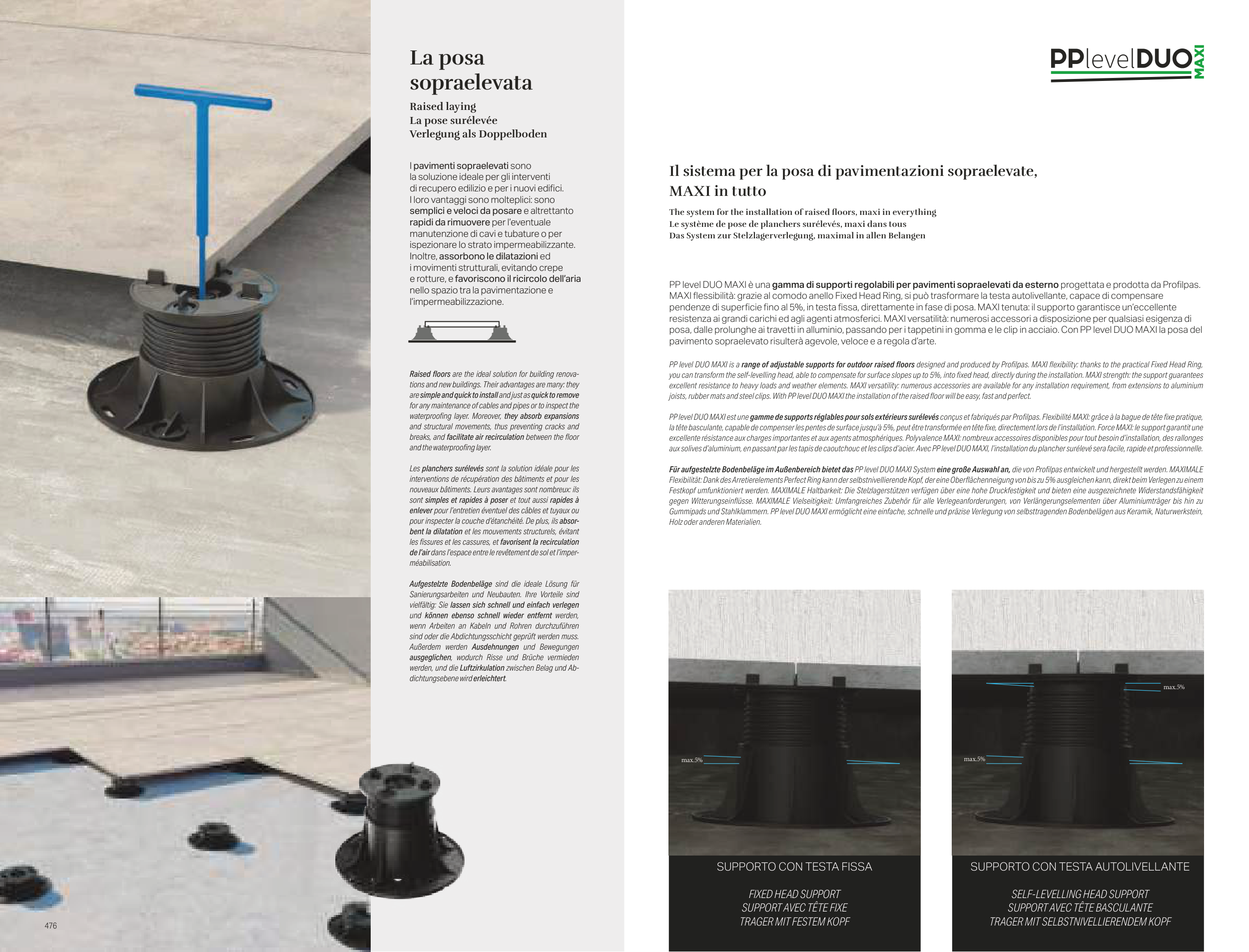 PP level DUO MAXI è una gamma di supporti regolabili per pavimenti sopraelevati da esterno progettata e prodotta da Profilpas.