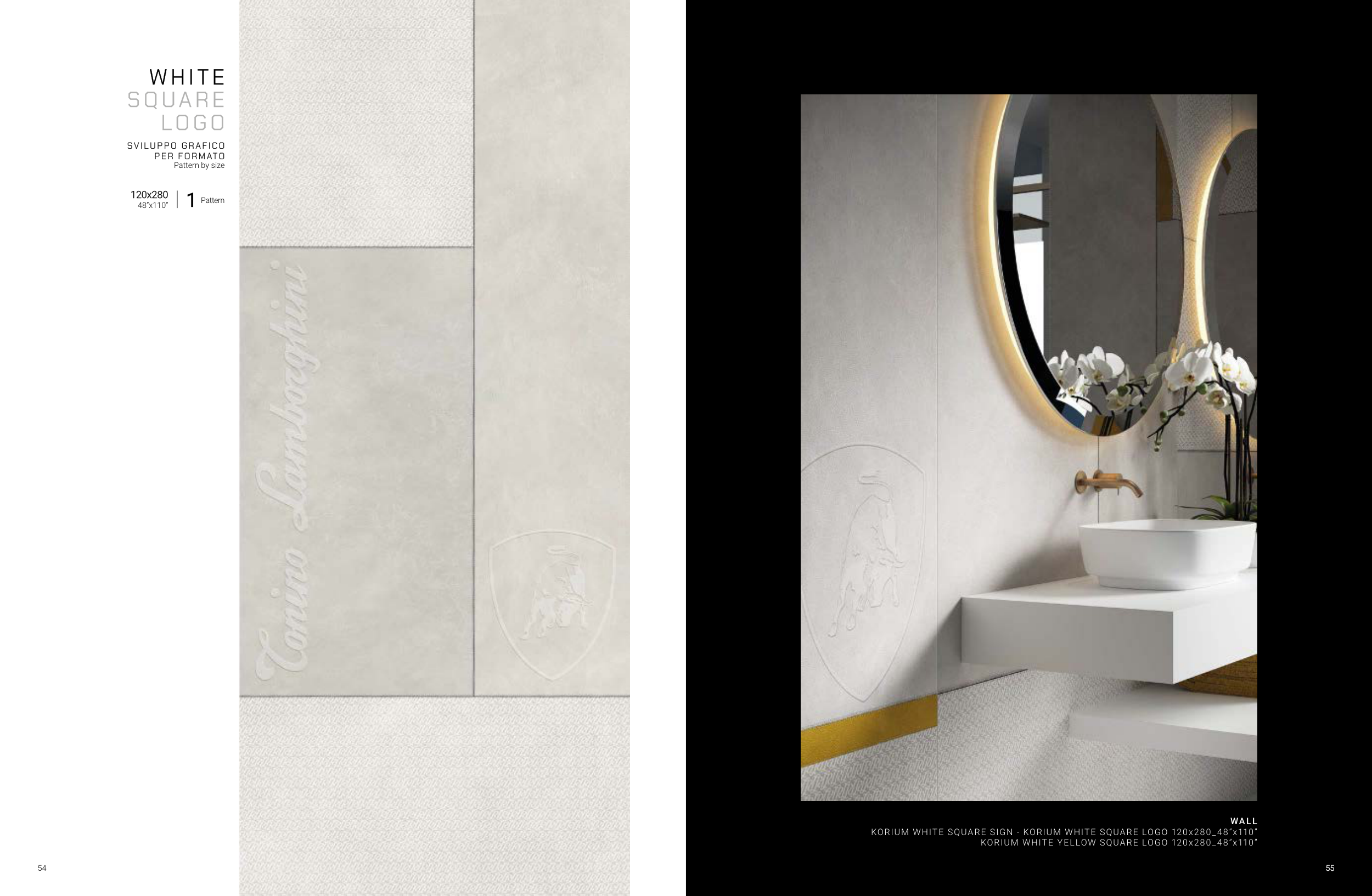 54 W H IT E S Q UA R E LO G O SV I LU P P O G R A F I C O P E R FO RMATO Pattern by size 120x280 48”x110” 1 Pattern WALL KORIUM WHITE SQUARE SIGN - KORIUM WHITE SQUARE LOGO 120x280_48”x110” KORIUM WHITE YELLOW SQUARE LOGO 120x280_48”x110” 55