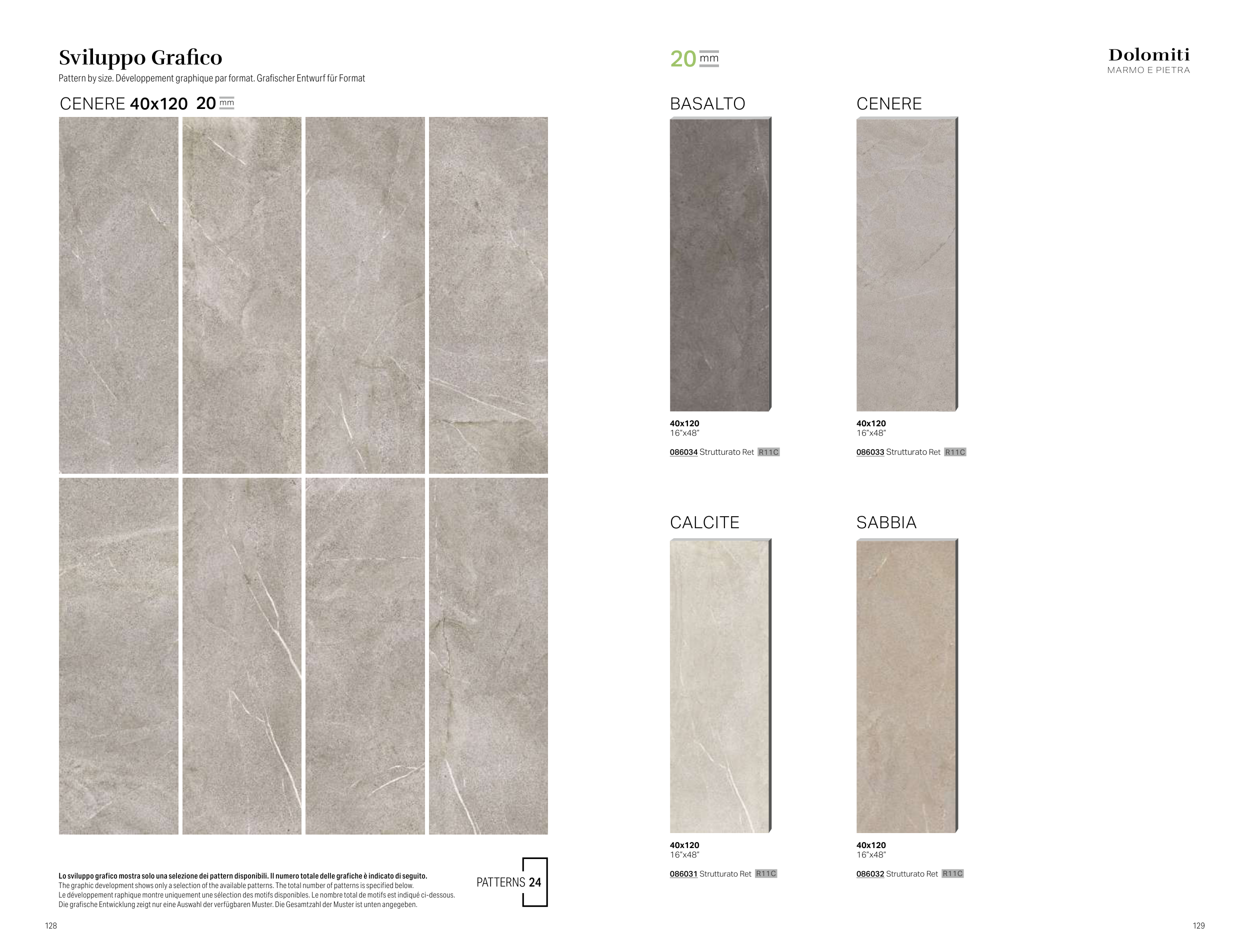 The graphic development shows only a selection of the available patterns. The total number of patterns is specified below.