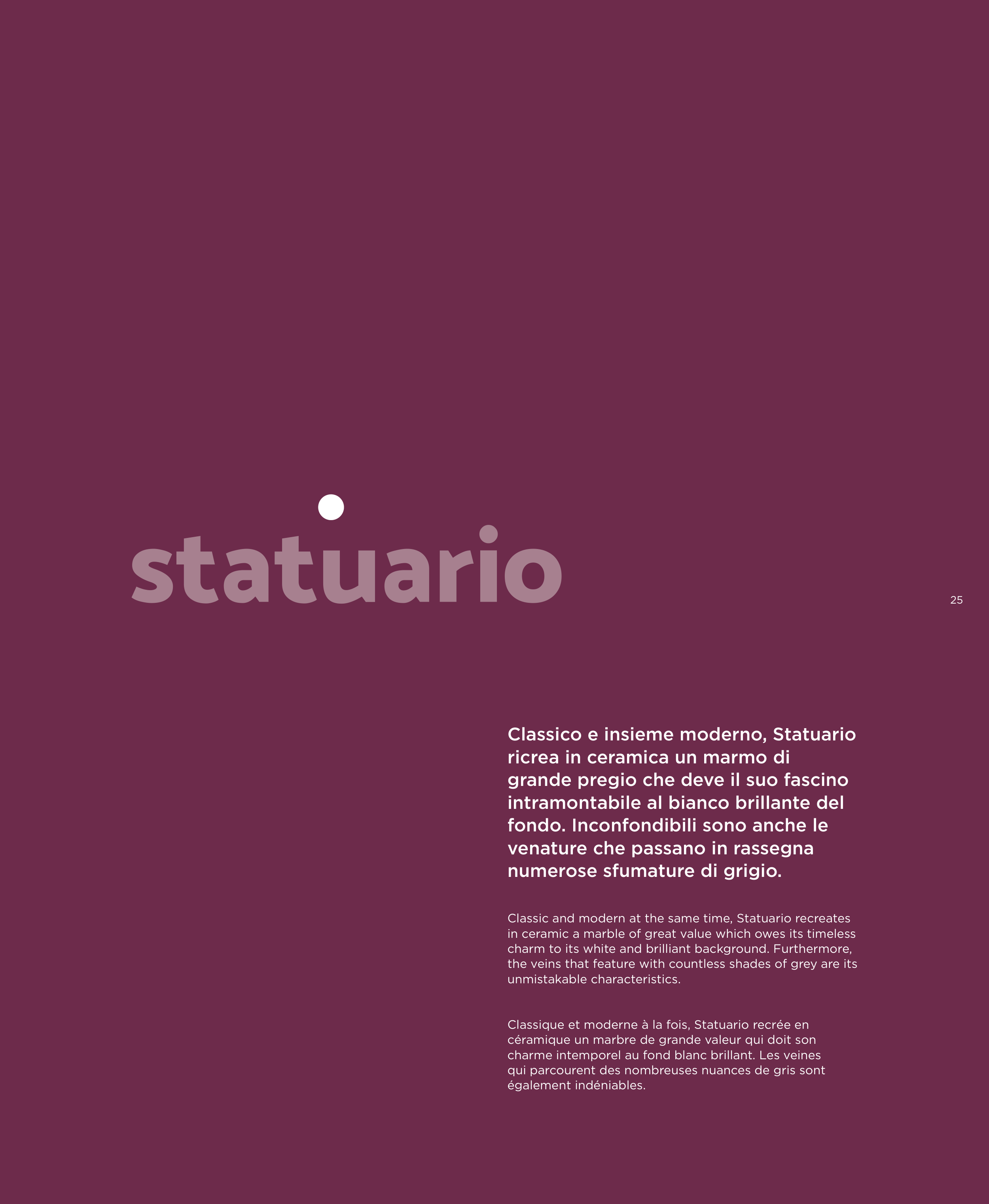 Classic and modern at the same time, Statuario recreates