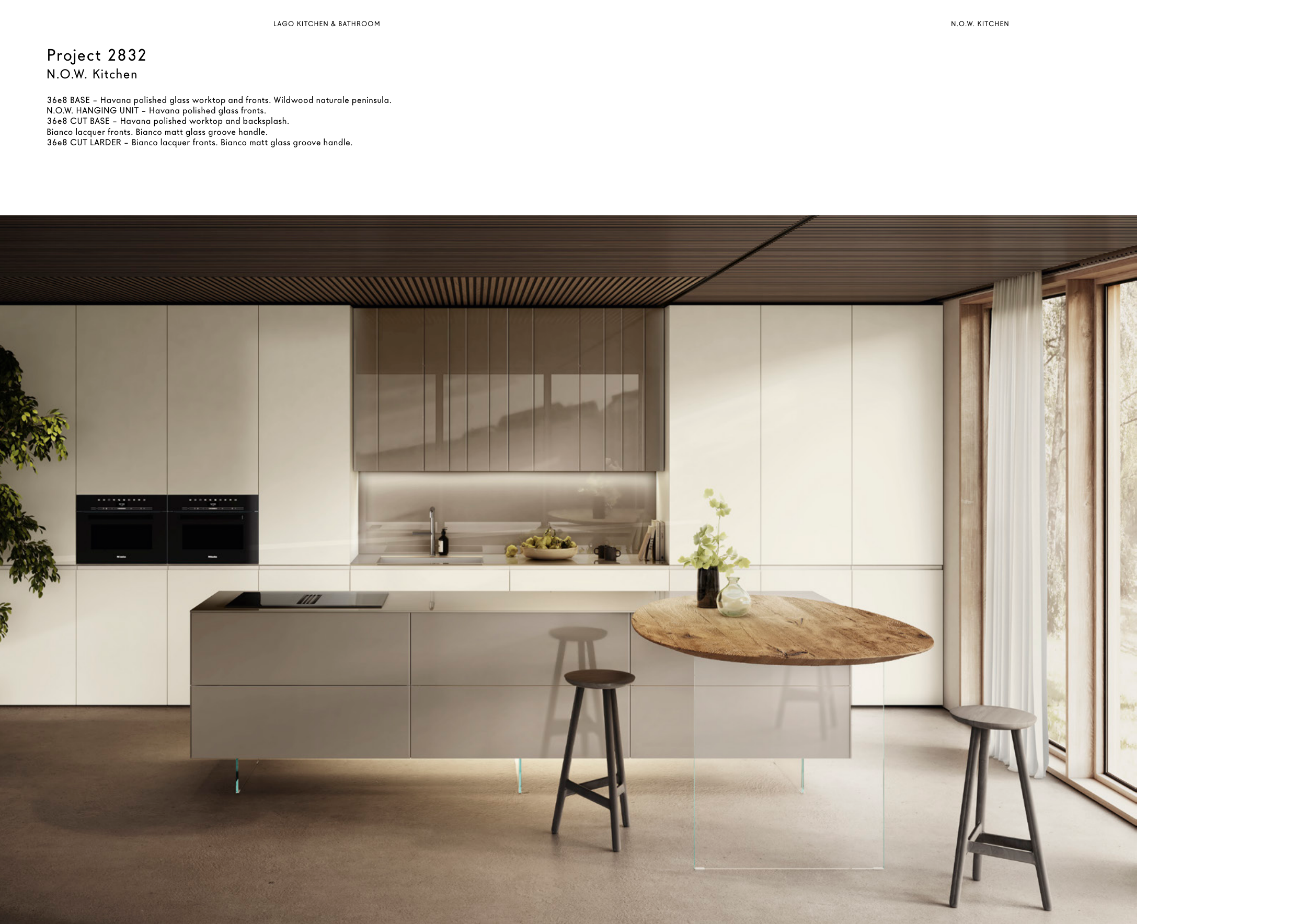 36e8 CUT LARDER – Bianco lacquer fronts. Bianco matt glass groove handle.