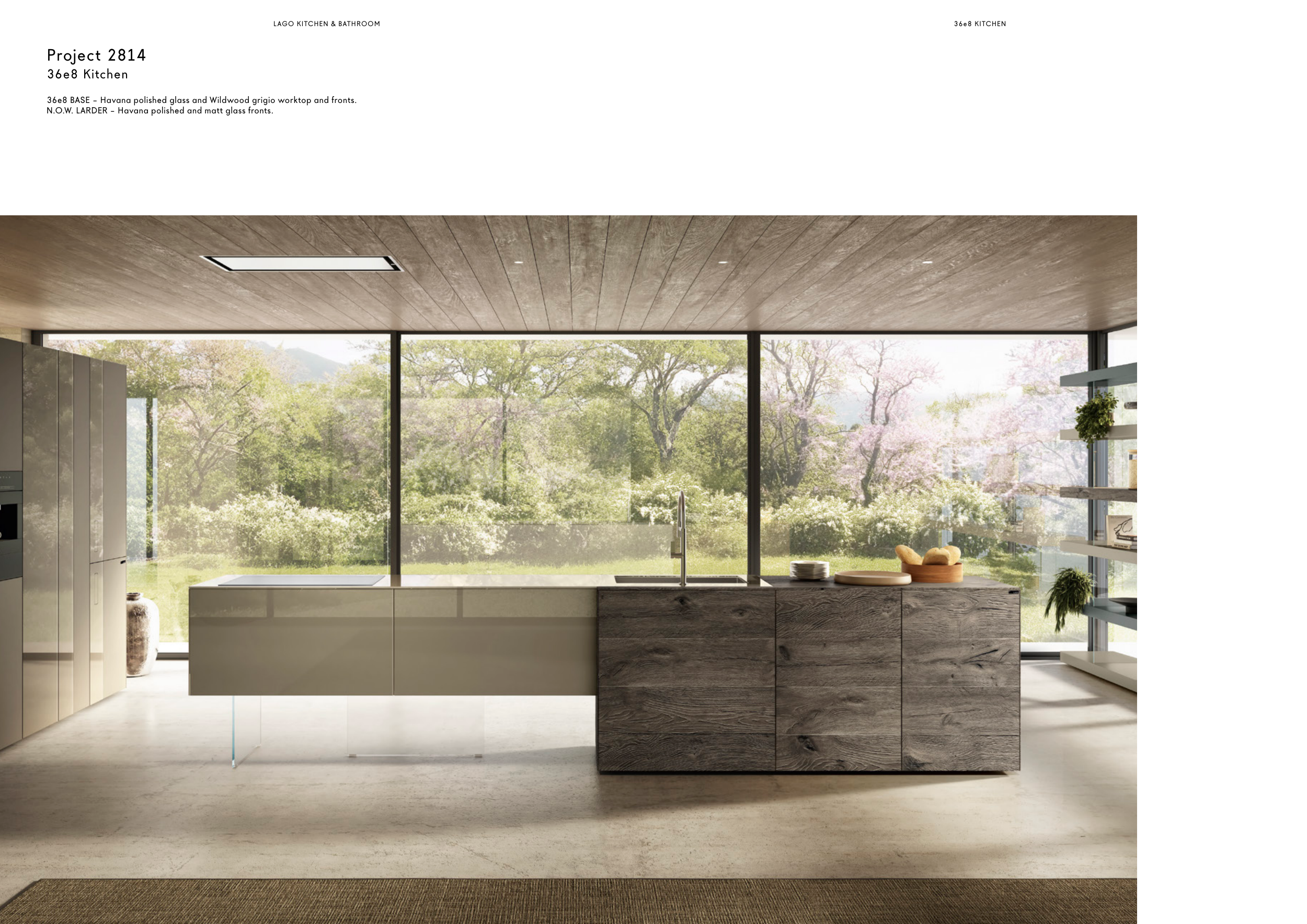 36e8 BASE – Havana polished glass and Wildwood grigio worktop and fronts.