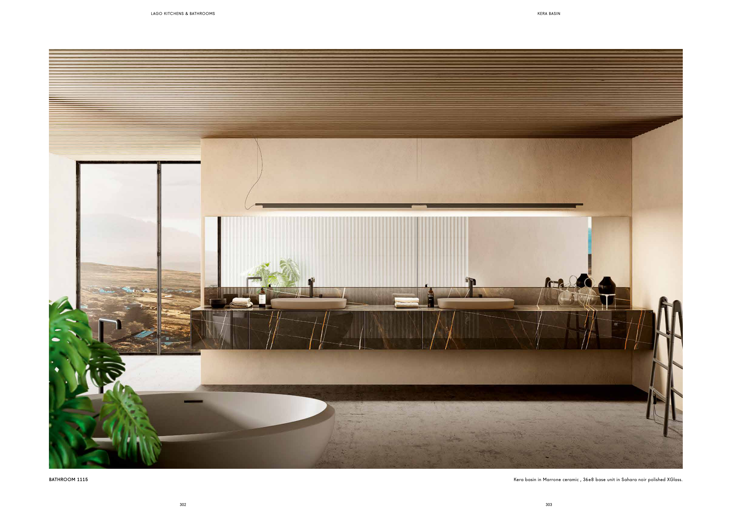 Kera basin in Marrone ceramic , 36e8 base unit in Sahara noir polished XGlass.