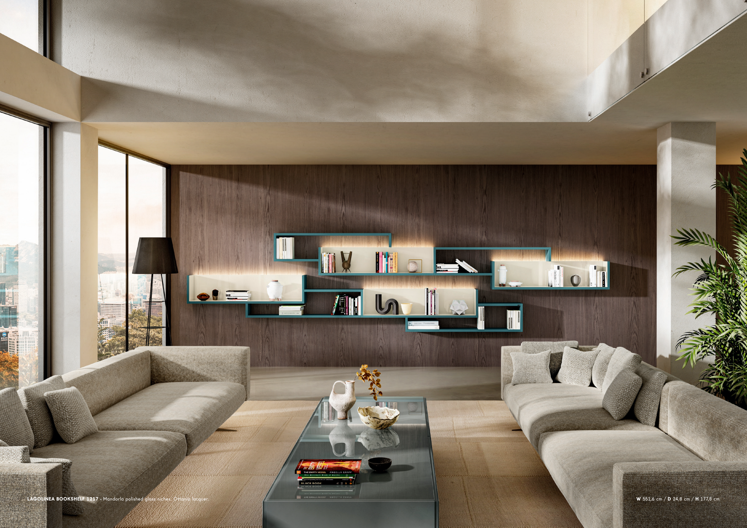 LAGOLINEA BOOKSHELF 1217 - Mandorla polished glass niches. Ottanio lacquer.