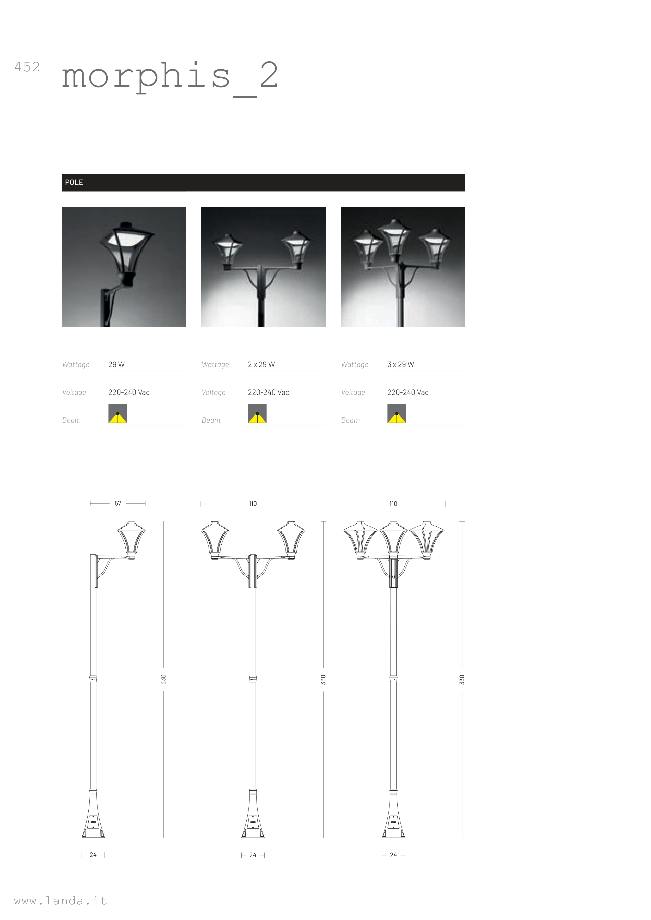 morphis_2 POLE Wattage 29 W Voltage 220-240 Vac Beam Wattage 2 x 29 W Voltage 220-240 Vac Beam Wattage 3 x 29 W Voltage 220-240 Vac Beam 452 www.landa.it