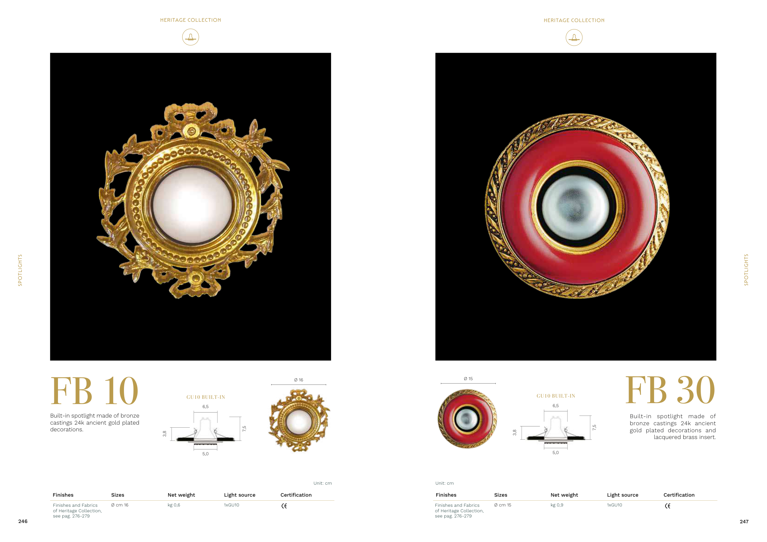 Built-in spotlight made of bronze