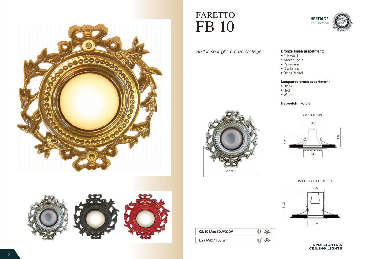 Built-in spotlight, bronze castings.