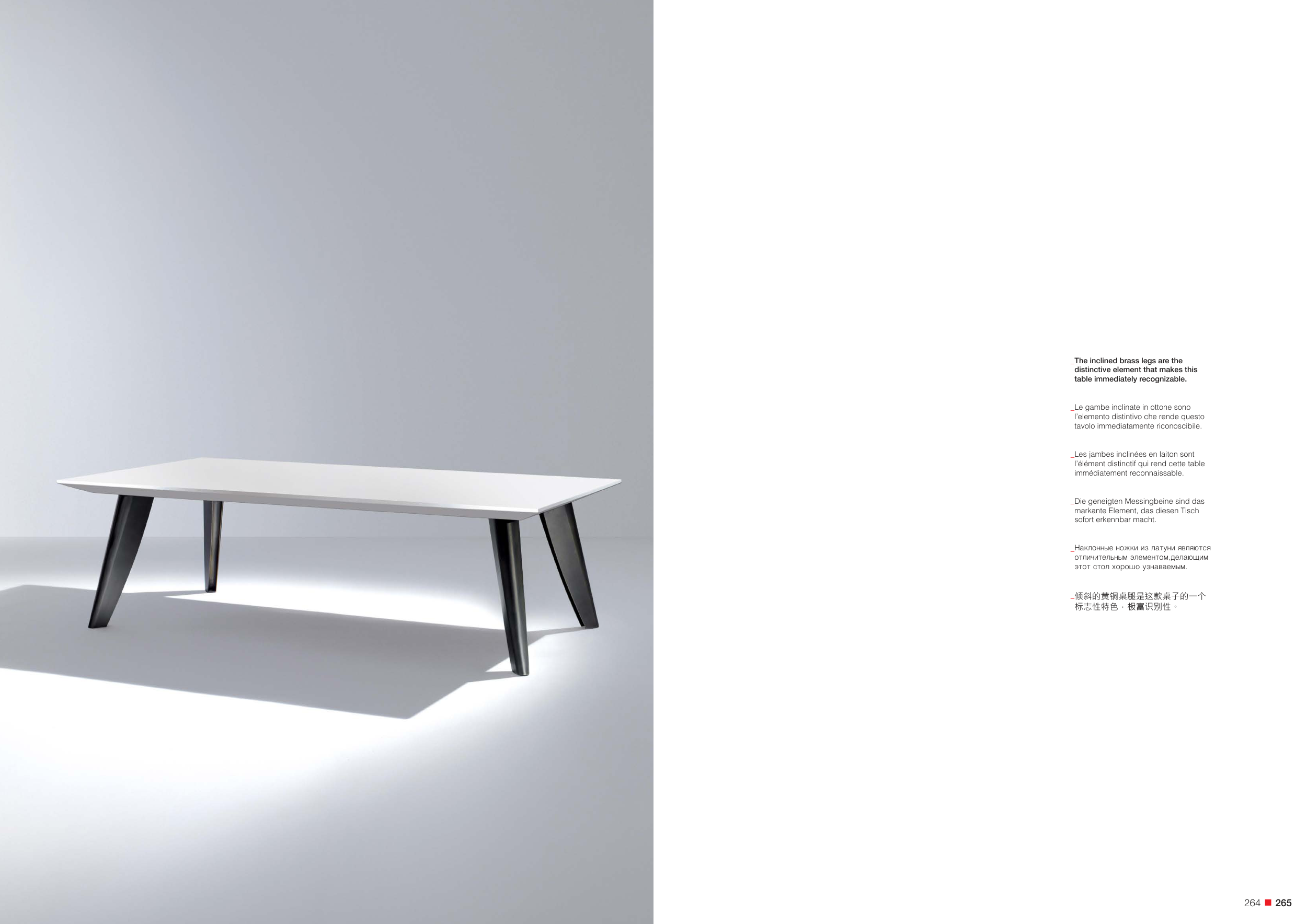 倾斜的黄铜桌腿是这款桌子的一个