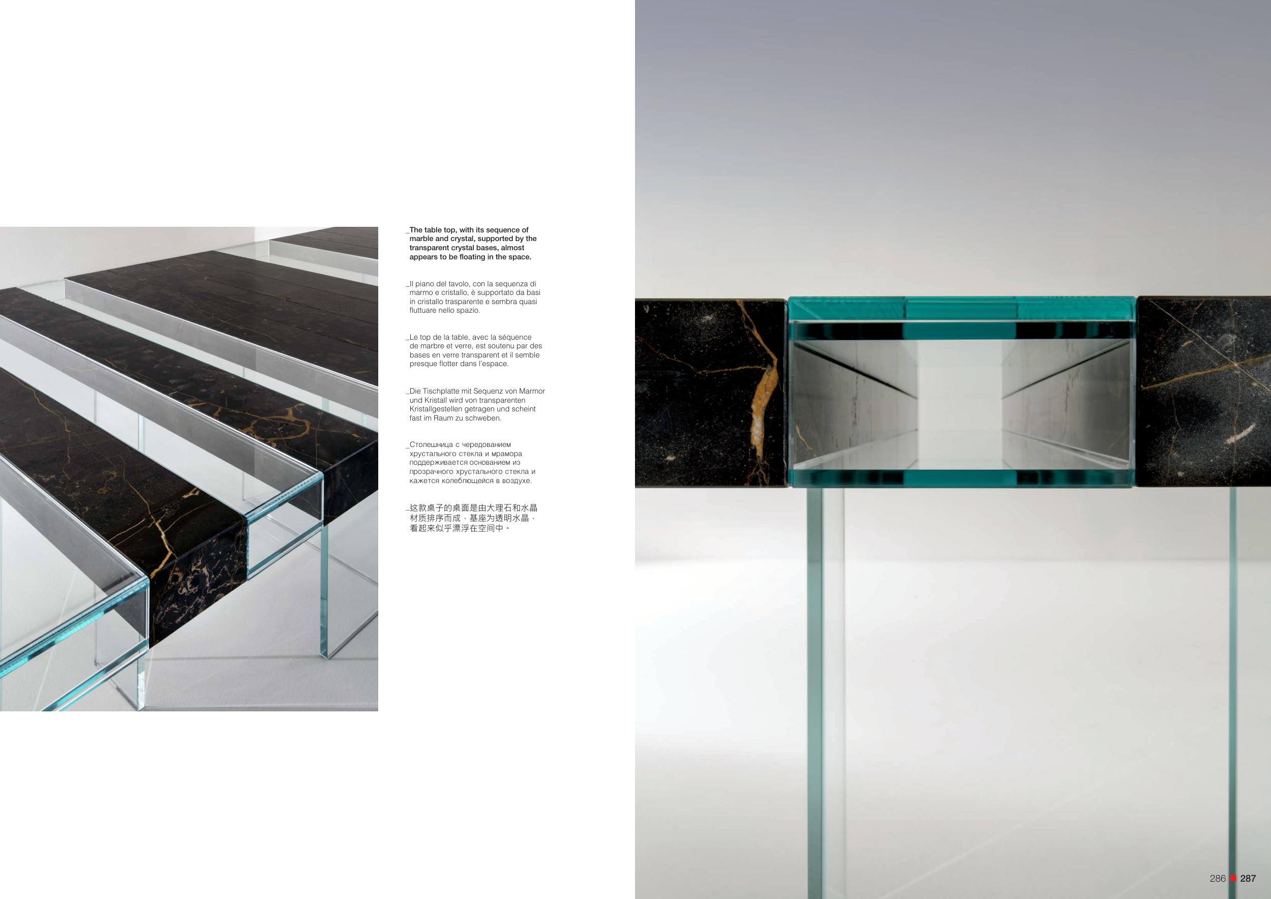 这款桌子的桌面是由大理石和水晶