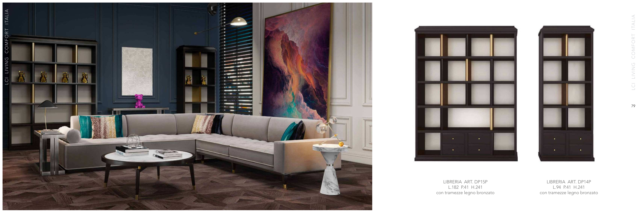 79 78 LCI LIVING COMFORT ITALIA LCI LIVING COMFORT ITALIA LIBRERIA ART. DP15P L.182 P.41 H.241 con tramezze legno bronzato LIBRERIA ART. DP14P L.94 P.41 H.241 con tramezze legno bronzato