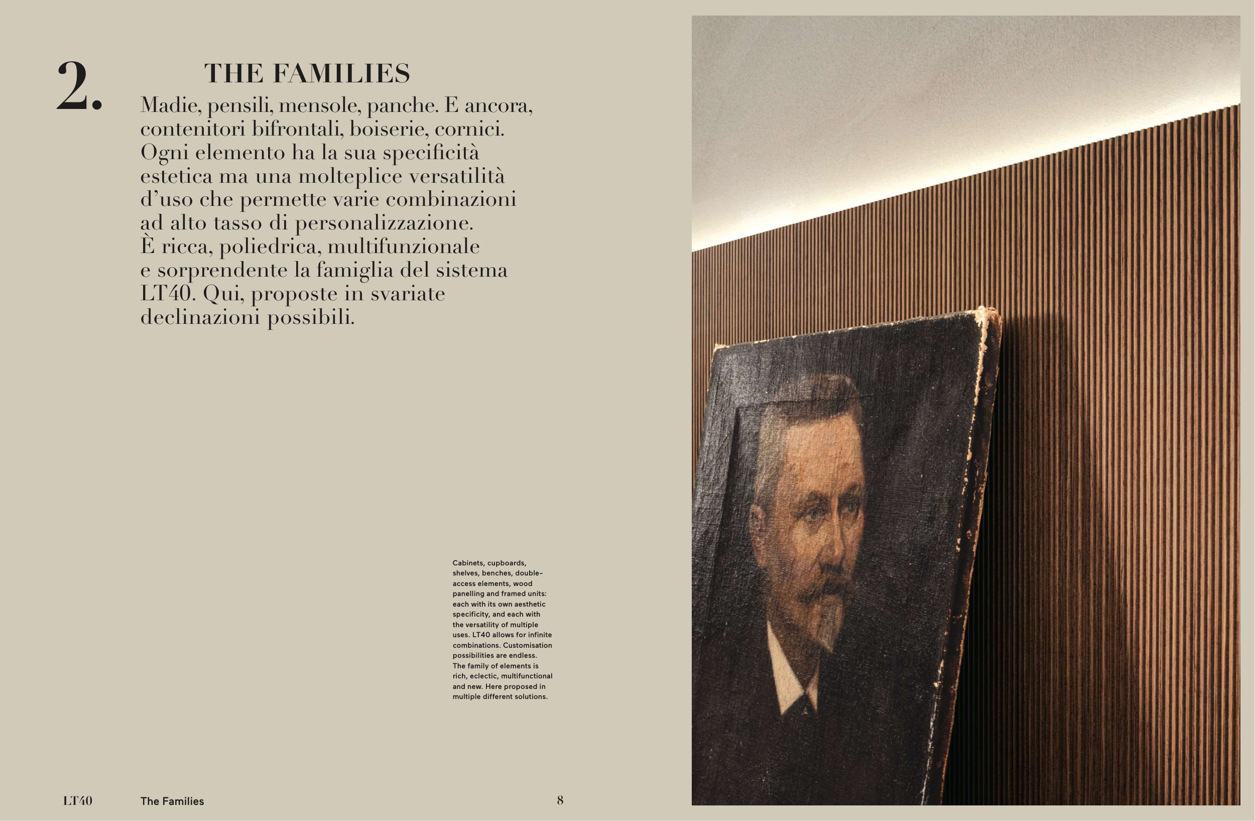 contenitori bifrontali, boiserie, cornici.
