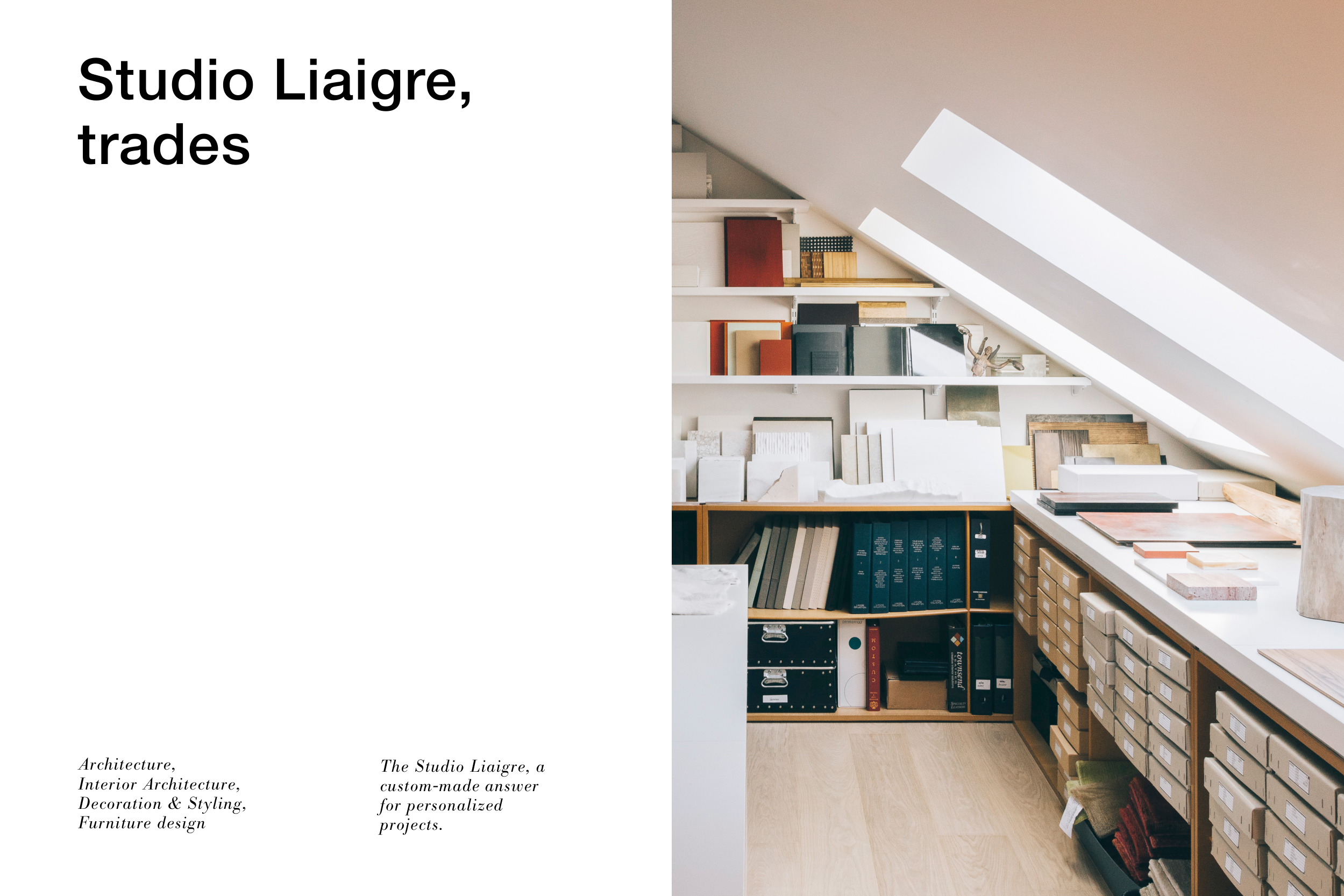 Architecture, Interior Architecture, Decoration & Styling, Furniture design The Studio Liaigre, a custom-made answer for personalized projects. Studio Liaigre, trades