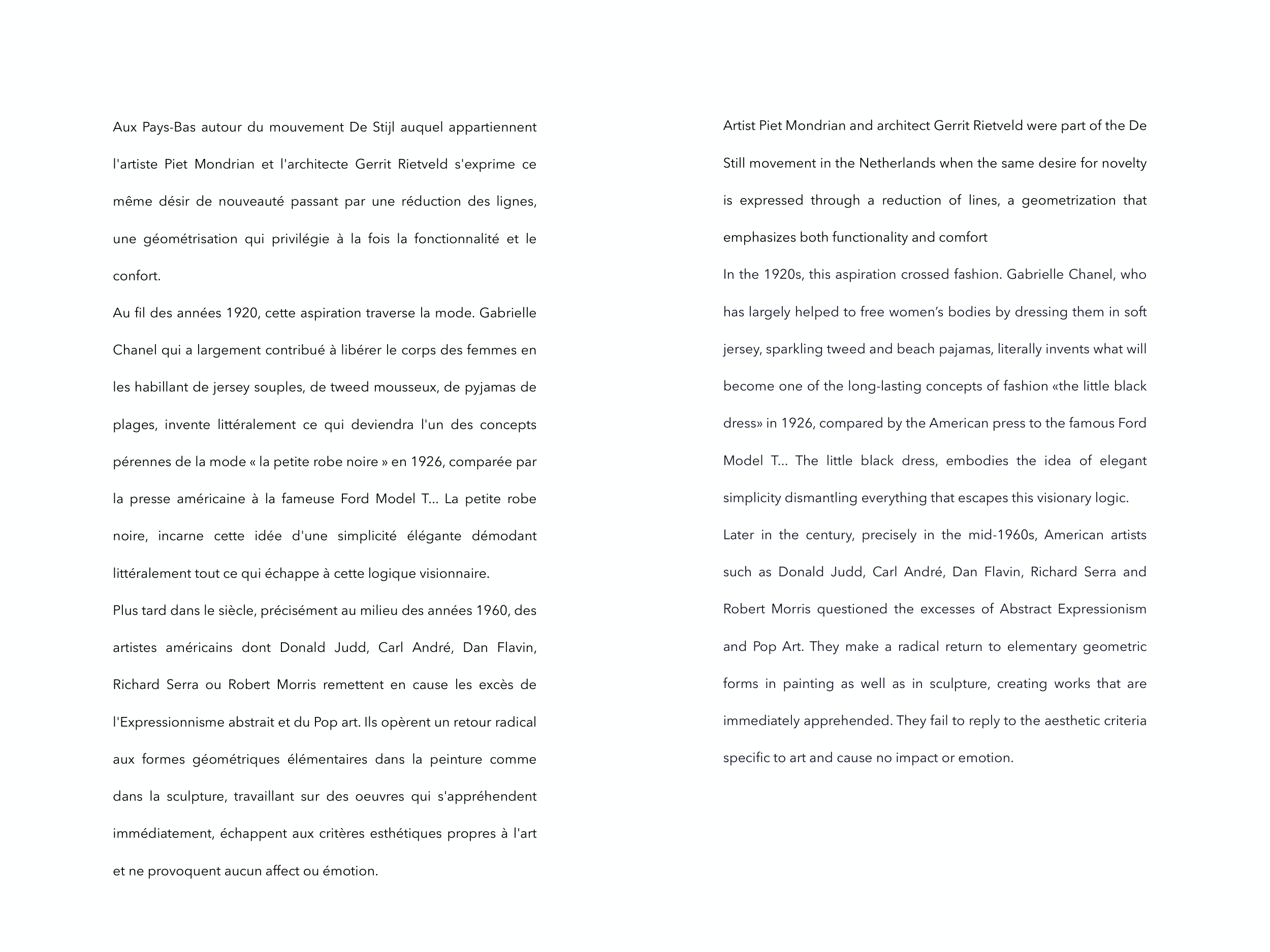artistes américains dont Donald Judd, Carl André, Dan Flavin,
