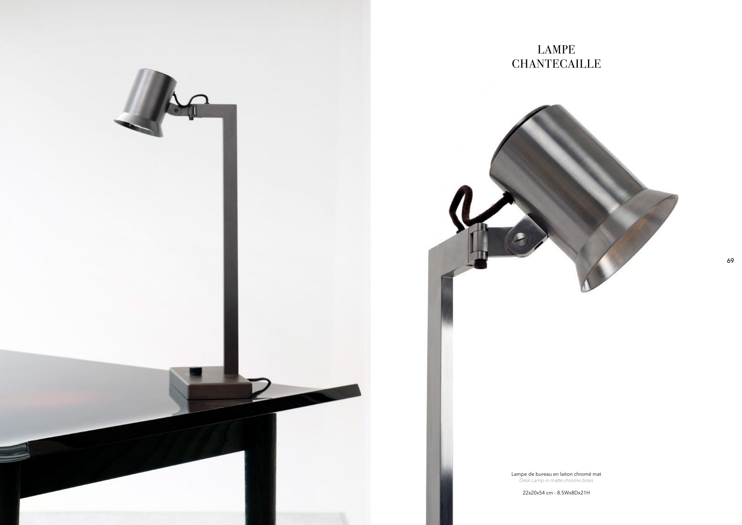 Lampe de bureau en laiton chromé mat