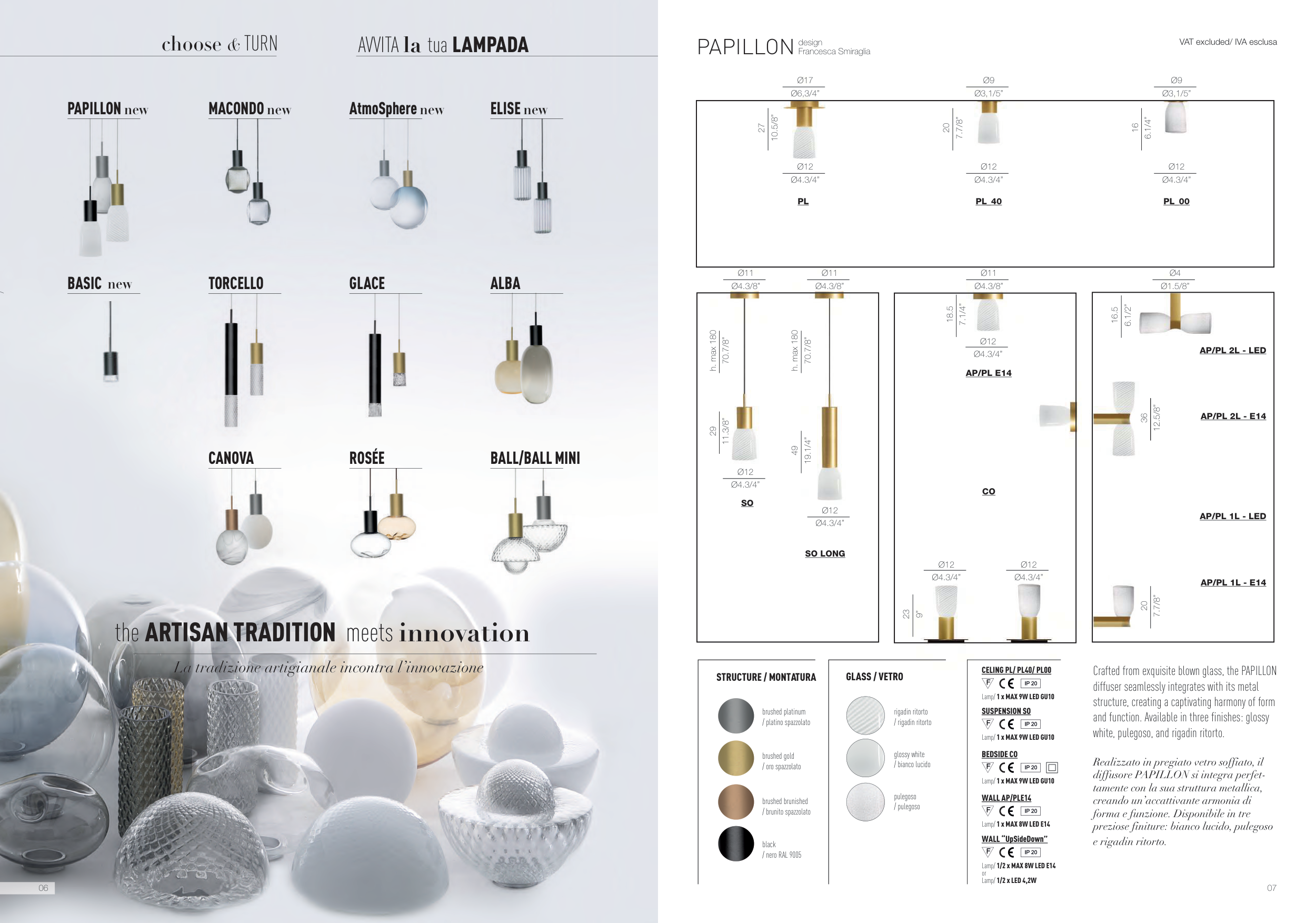 Crafted from exquisite blown glass, the PAPILLON