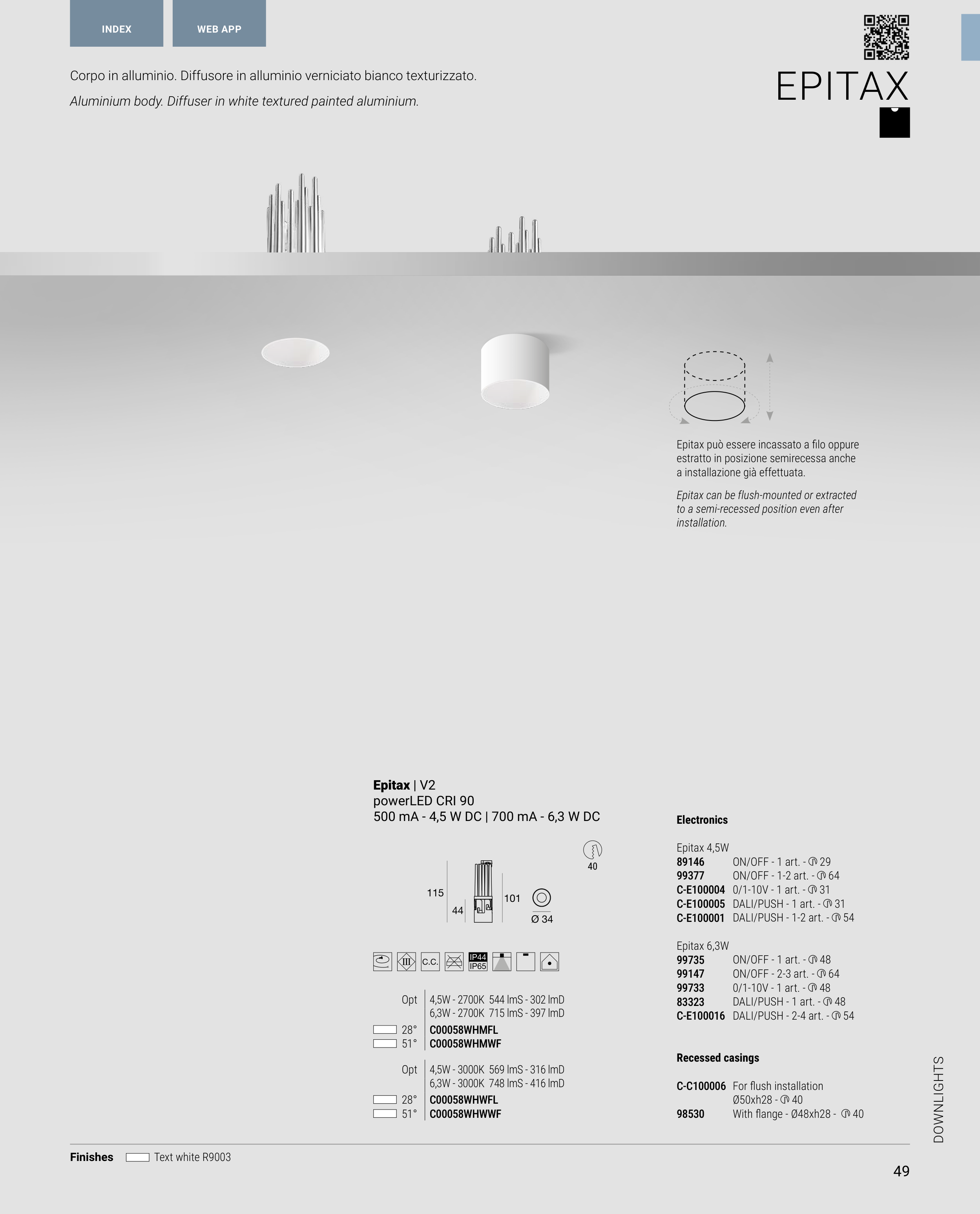 Aluminium body. Diffuser in white textured painted aluminium.