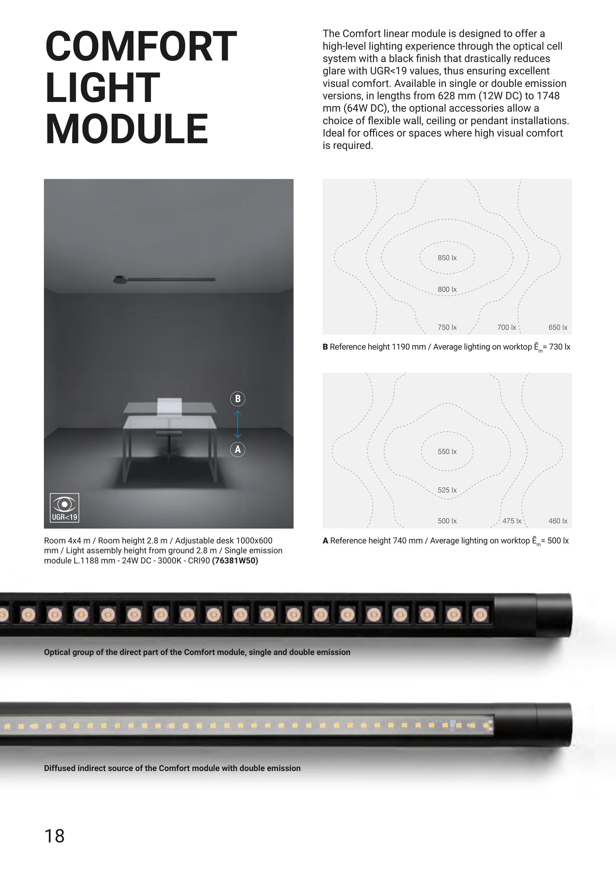 Diffused indirect source of the Comfort module with double emission