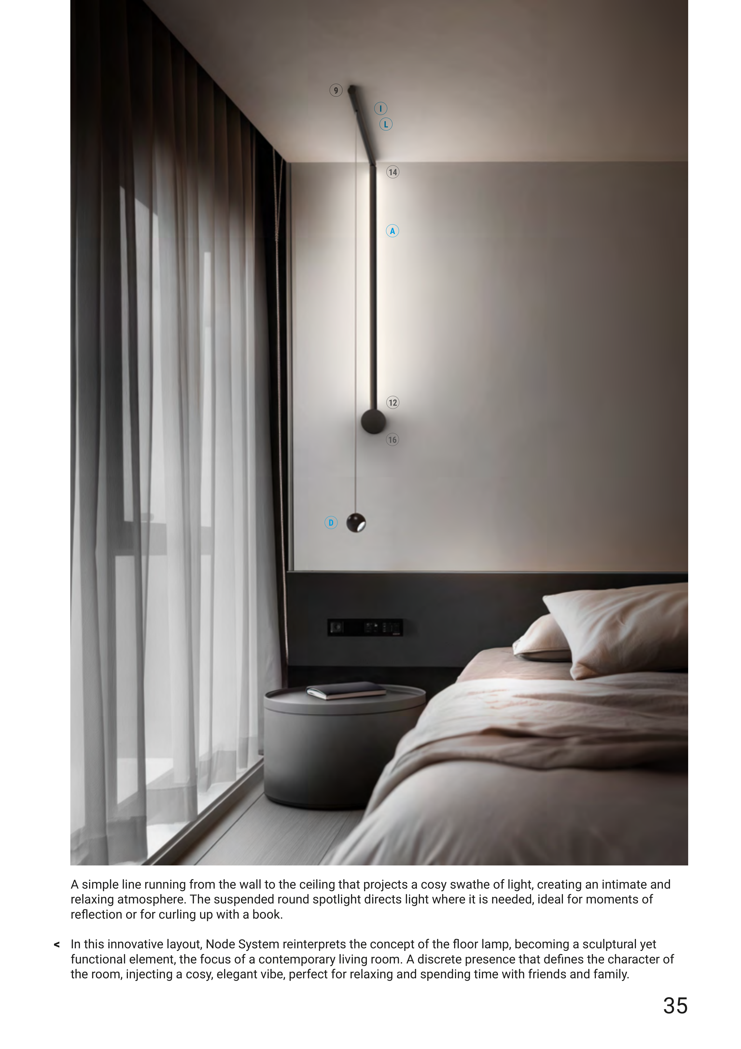 In this innovative layout, Node System reinterprets the concept of the floor lamp, becoming a sculptural yet