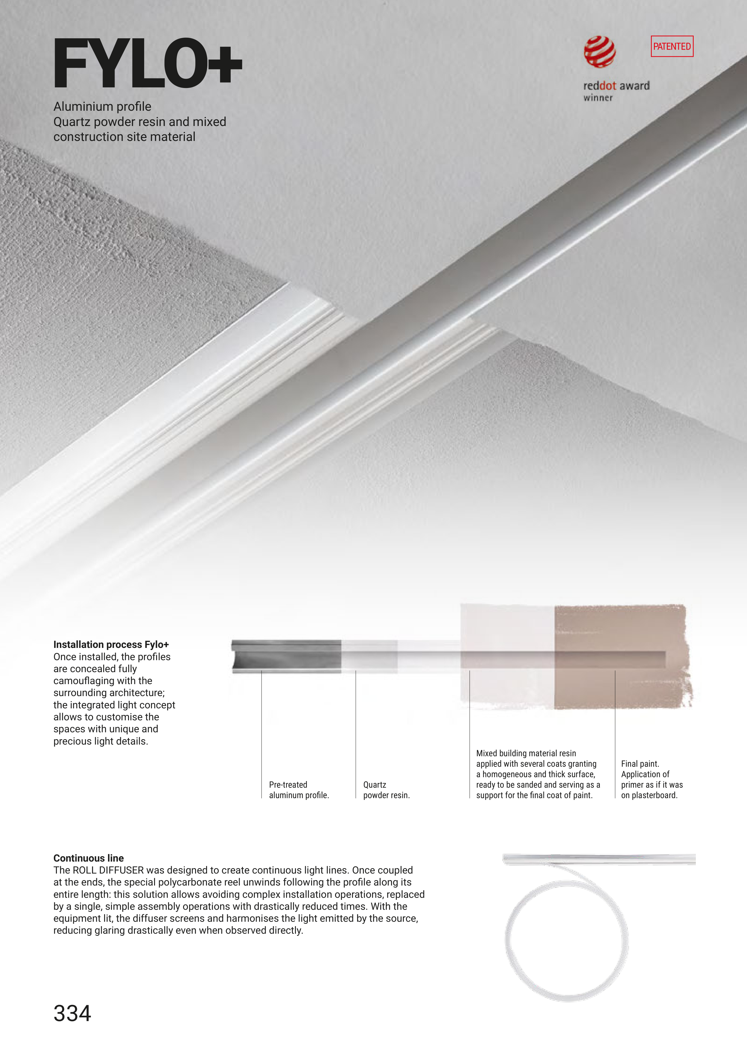 The ROLL DIFFUSER was designed to create continuous light lines. Once coupled