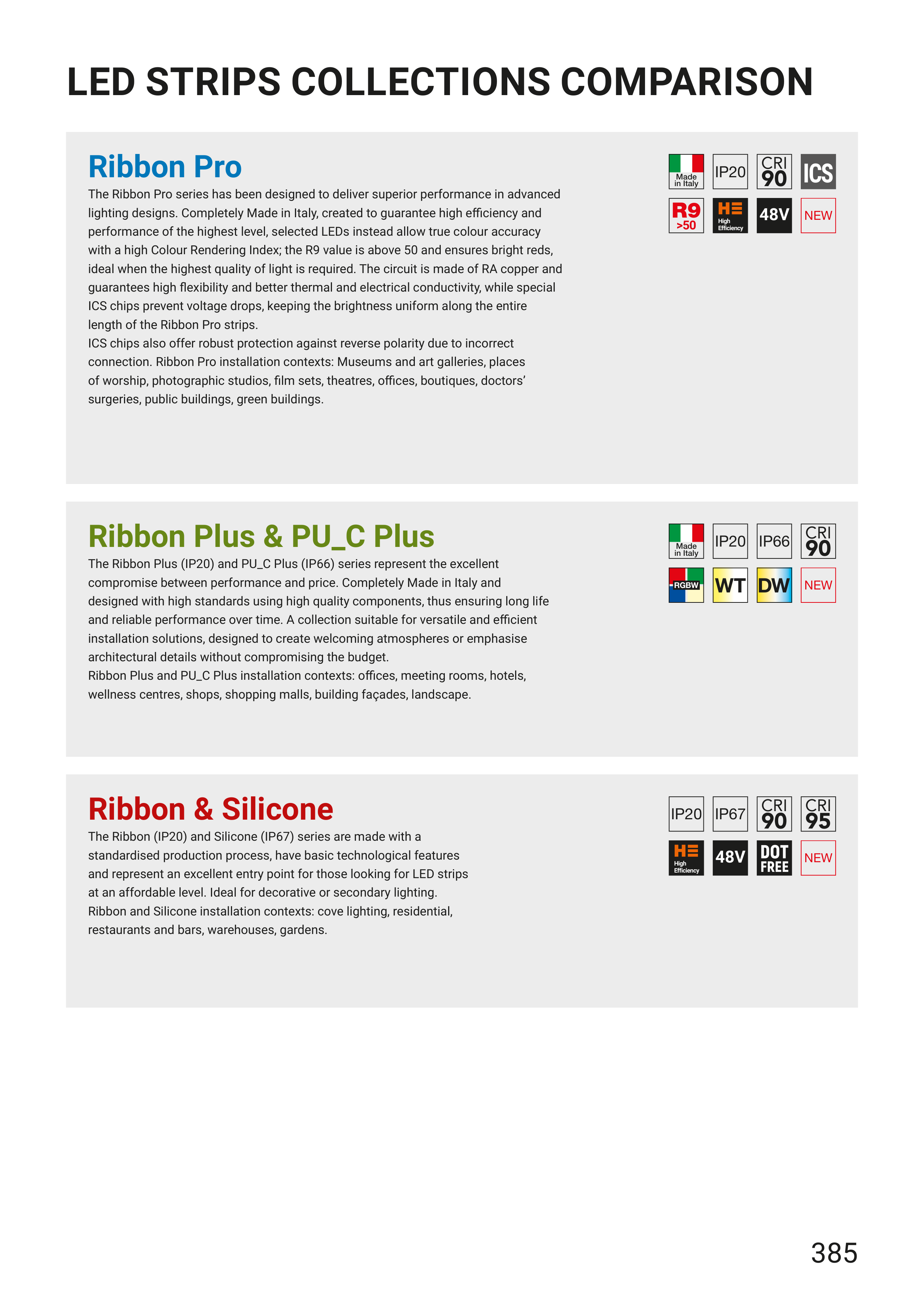 LED STRIPS COLLECTIONS COMPARISON