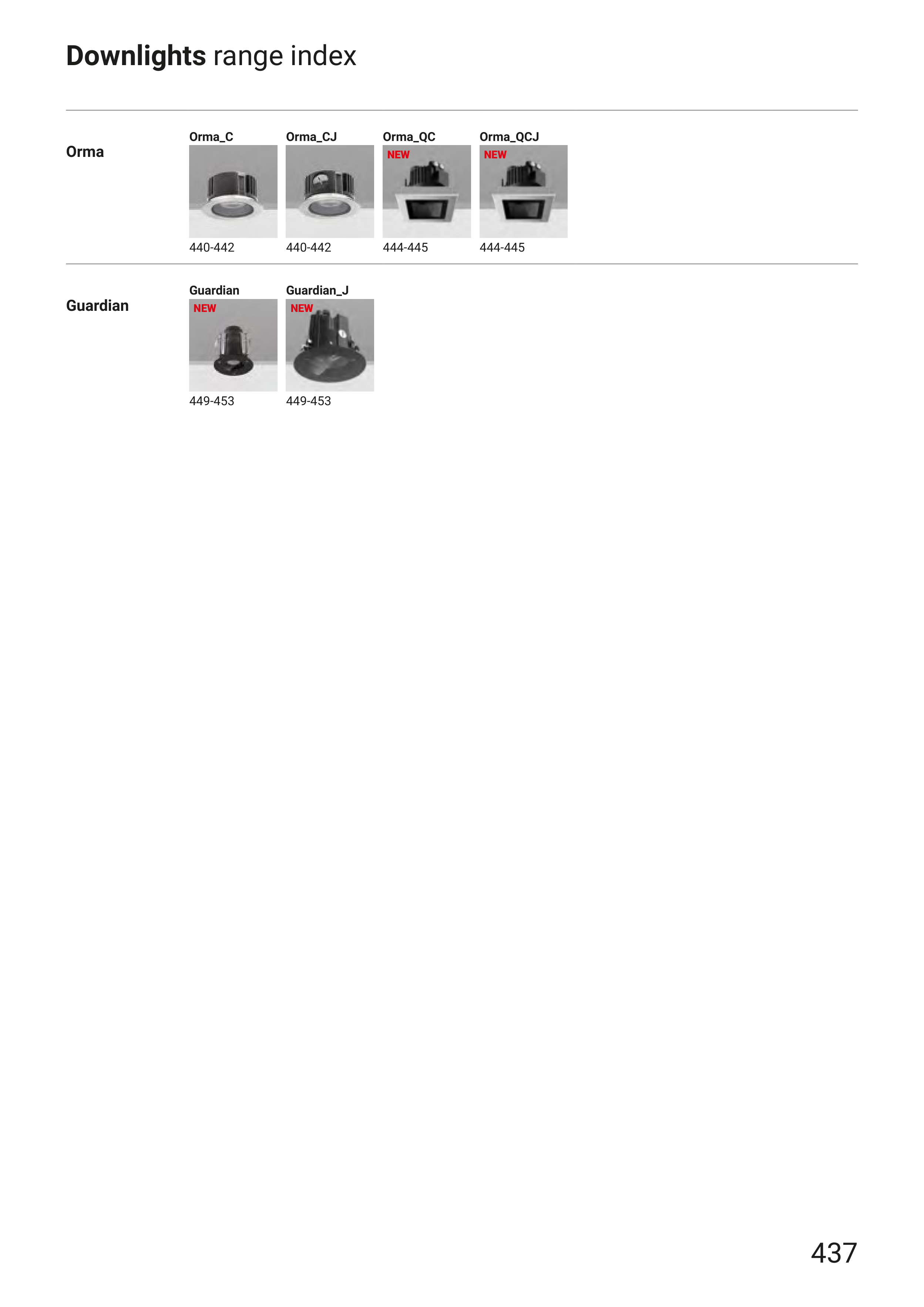 Downlights range index