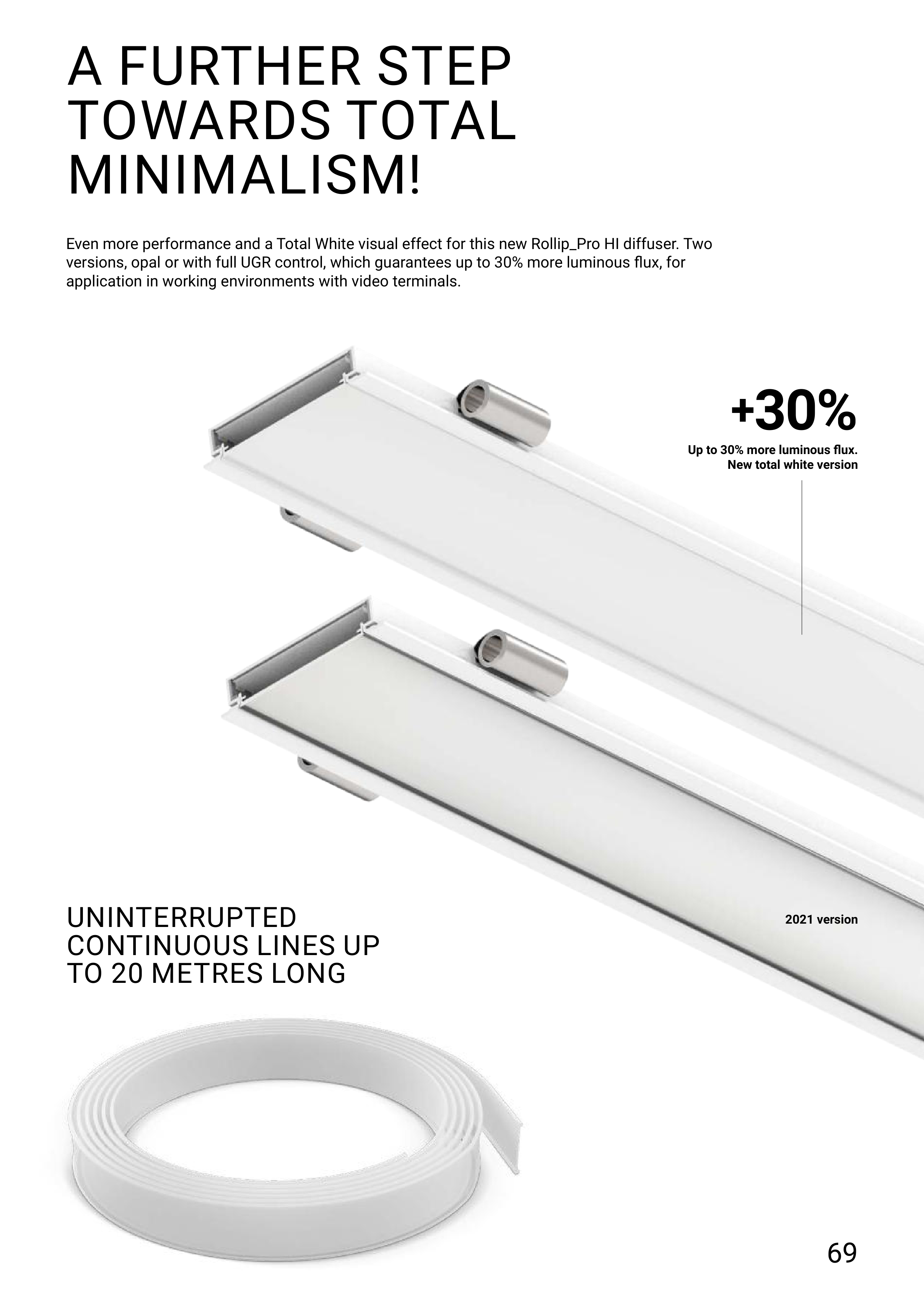 versions, opal or with full UGR control, which guarantees up to 30% more luminous flux, for