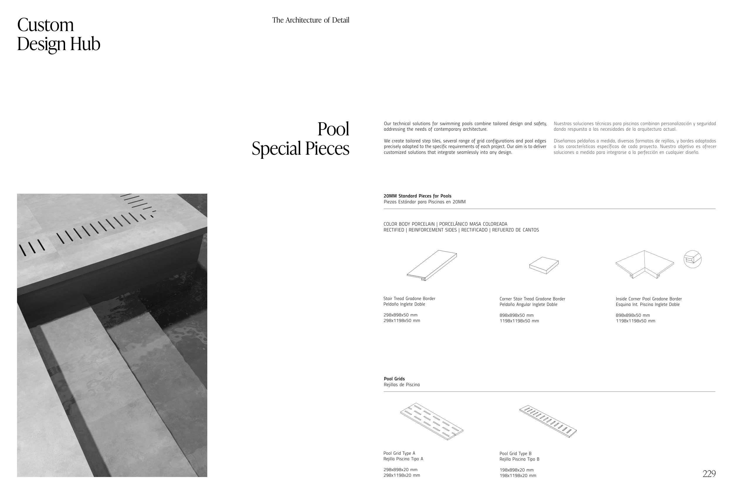 We create tailored step tiles, several range of grid configurations and pool edges
