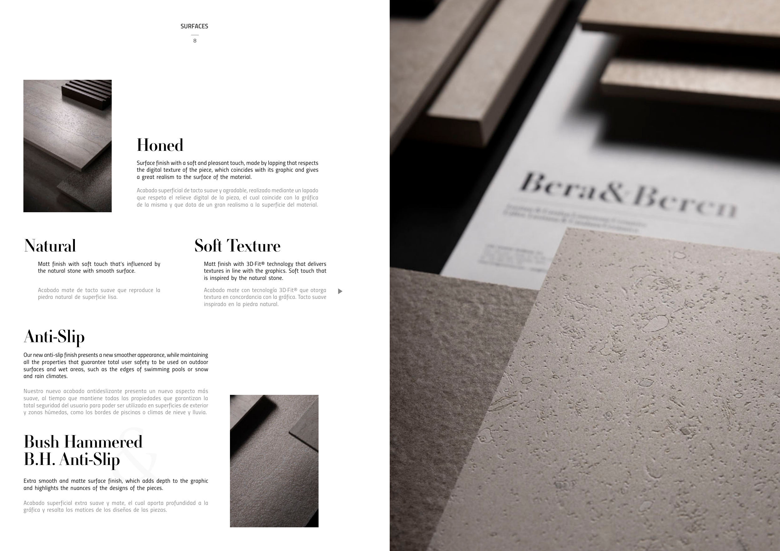 Acabado superficial extra suave y mate, el cual aporta profundidad a la