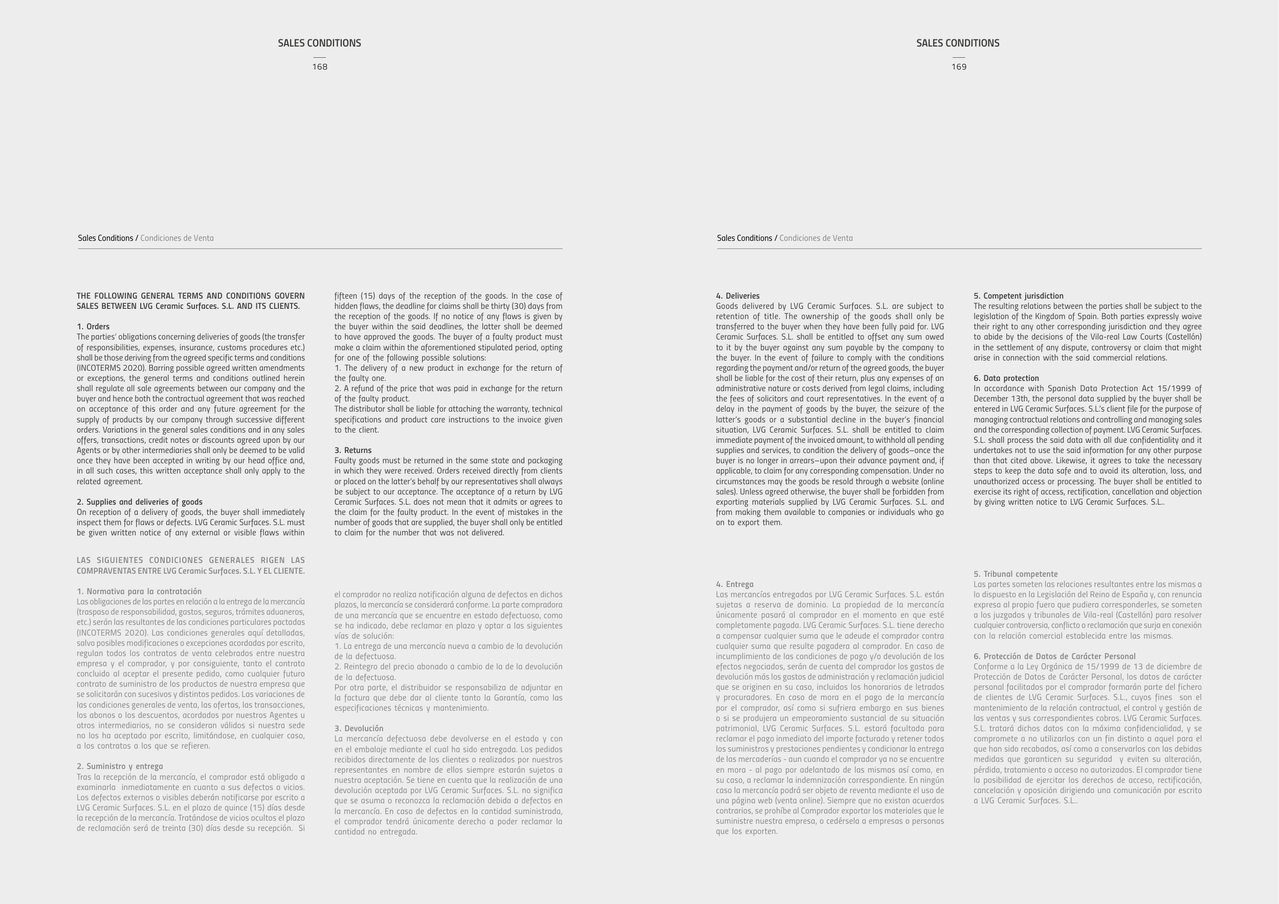 Goods delivered by LVG Ceramic Surfaces. S.L. are subject to